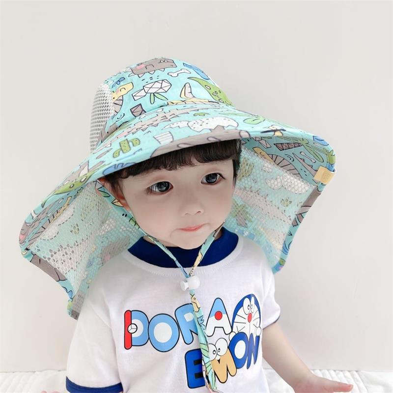 일본 어린이 모자 여름 아기의 큰 챙이 목도리 모자 남학생과 여학생용 자외선 차단 어부 모자