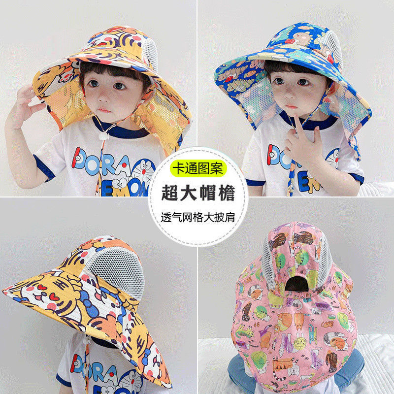 일본 어린이 모자 여름 아기의 큰 챙이 목도리 모자 남학생과 여학생용 자외선 차단 어부 모자스토어 가기