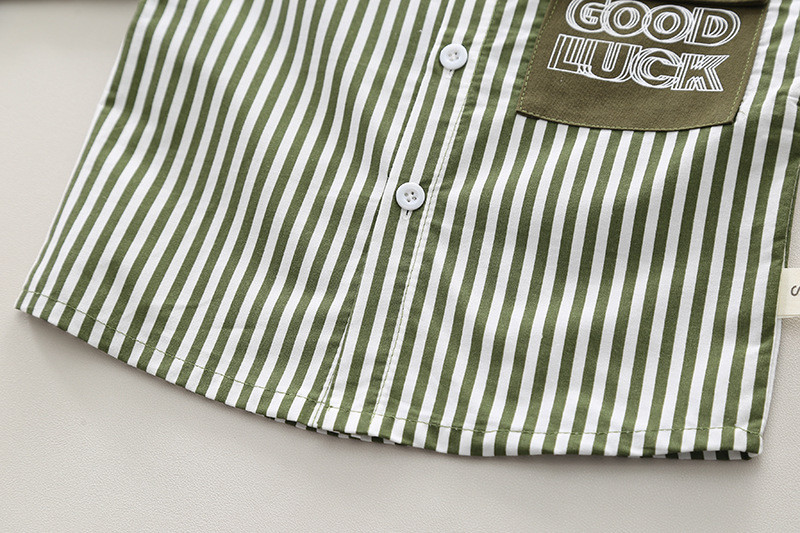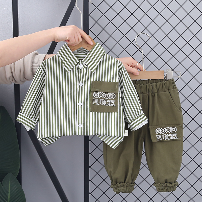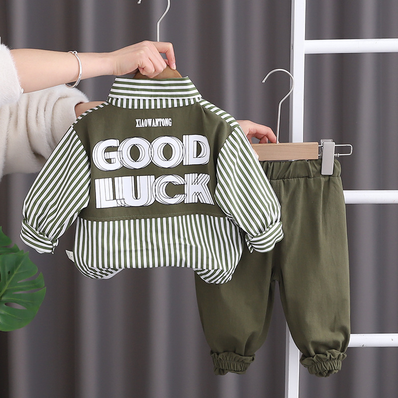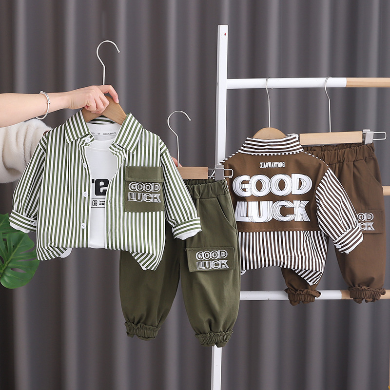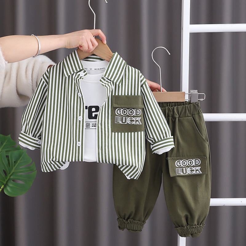 2024 봄 새 소년 줄무늬 셔츠 긴팔 3 피스 세트 소년 캐주얼 바지 세트 원피스 배달스토어 가기