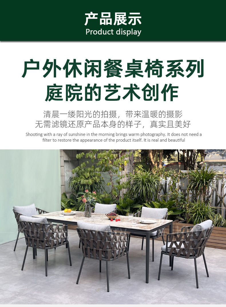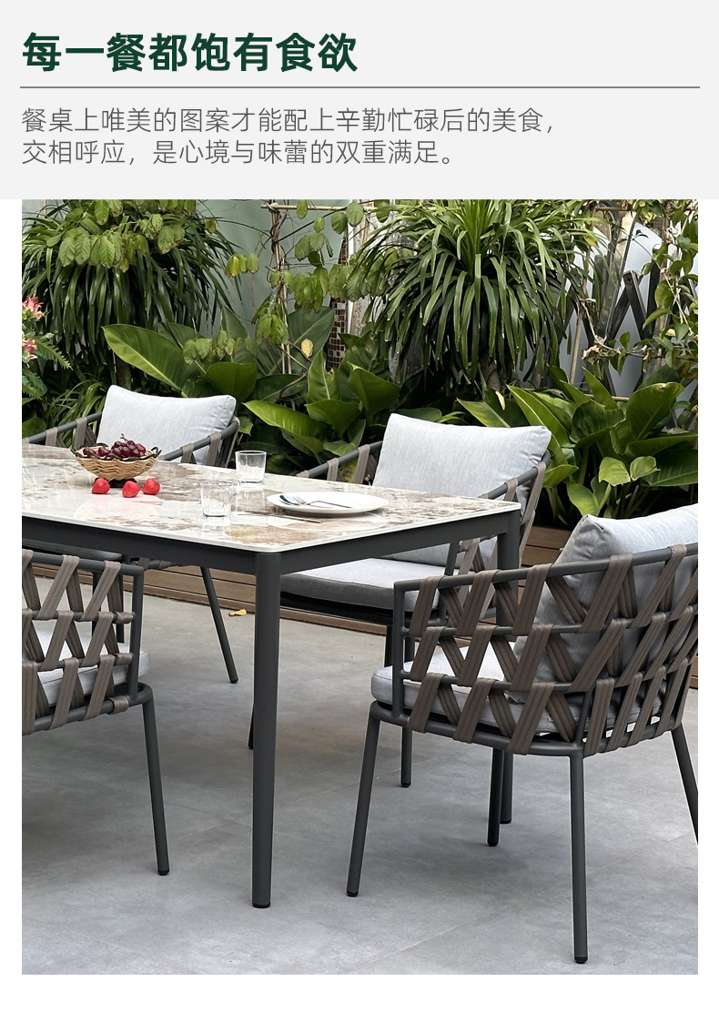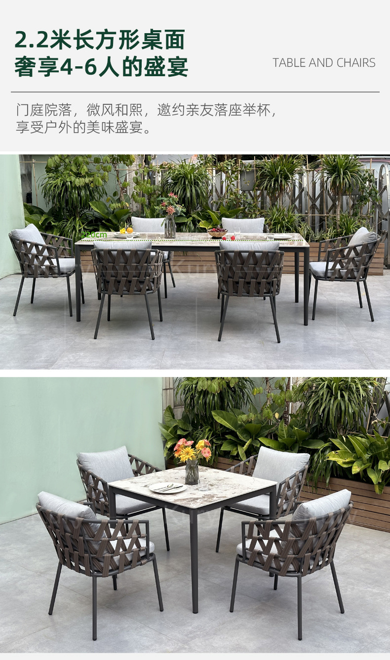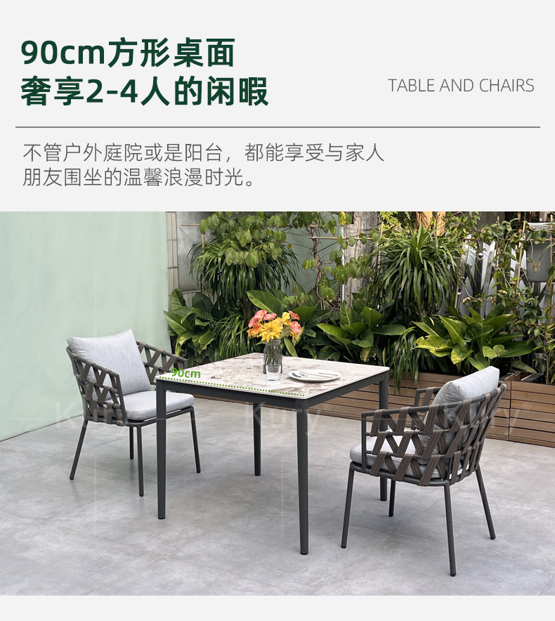 공장 직접 판매 큐리 야외 록 플레이트 레저 야외 식탁과 의자 조합 리본 짠 빌라 정원 안뜰 의자