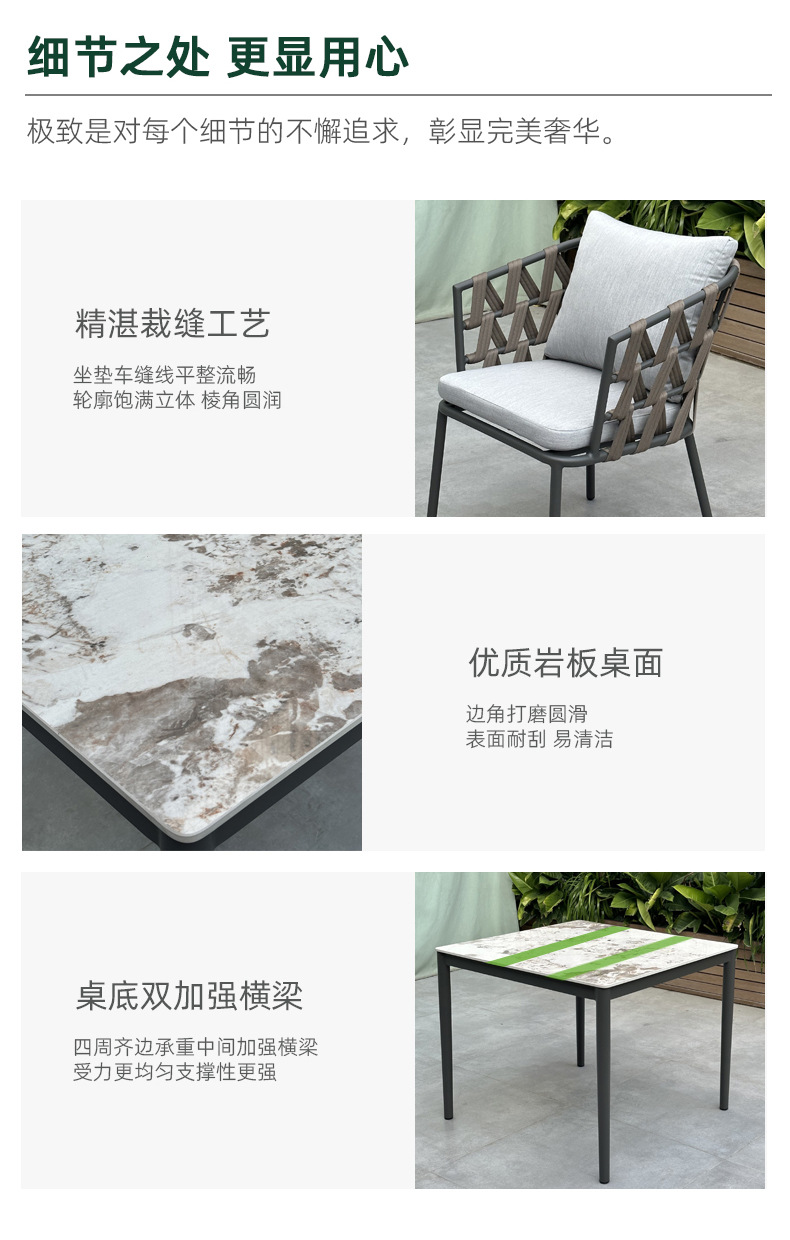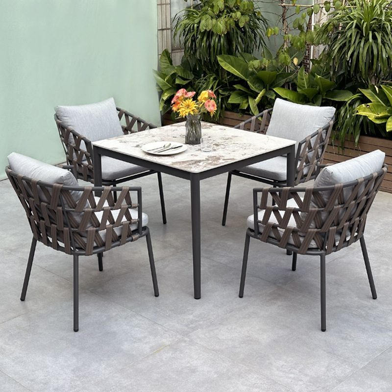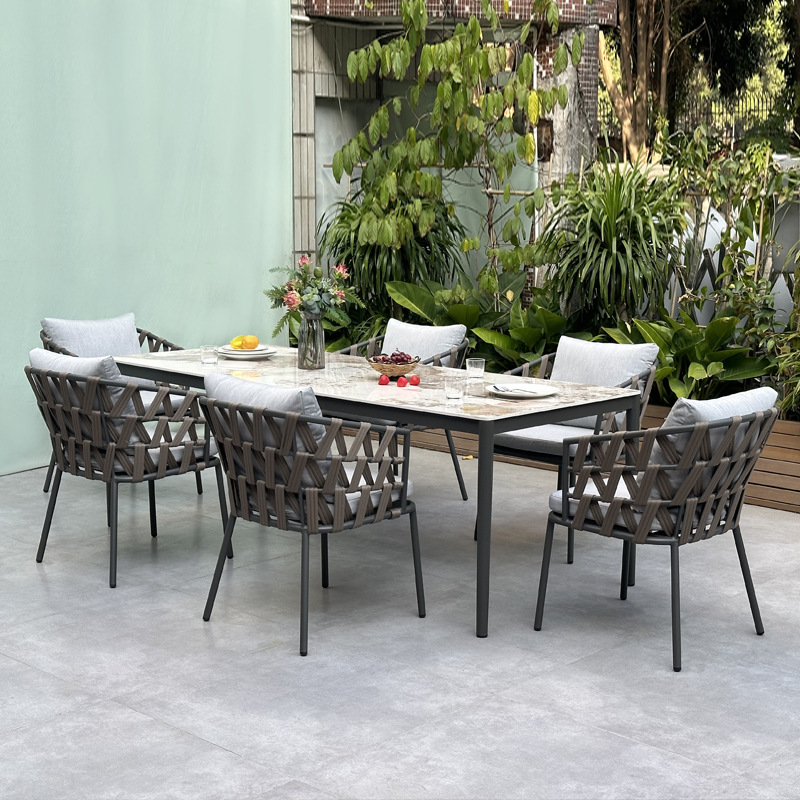 공장 직접 판매 큐리 야외 록 플레이트 레저 야외 식탁과 의자 조합 리본 짠 빌라 정원 안뜰 의자스토어 가기