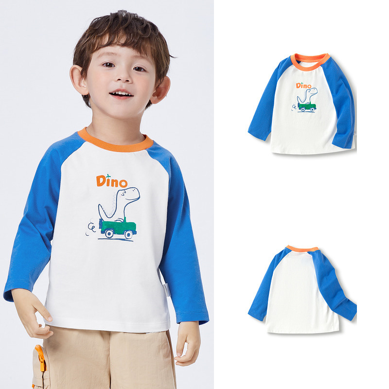 남학생 긴팔 티셔츠 어린이 아기 아동복 2024 새 봄과 가을 대비 컬러 바닥 셔츠 아동복 면화 패션스토어 가기