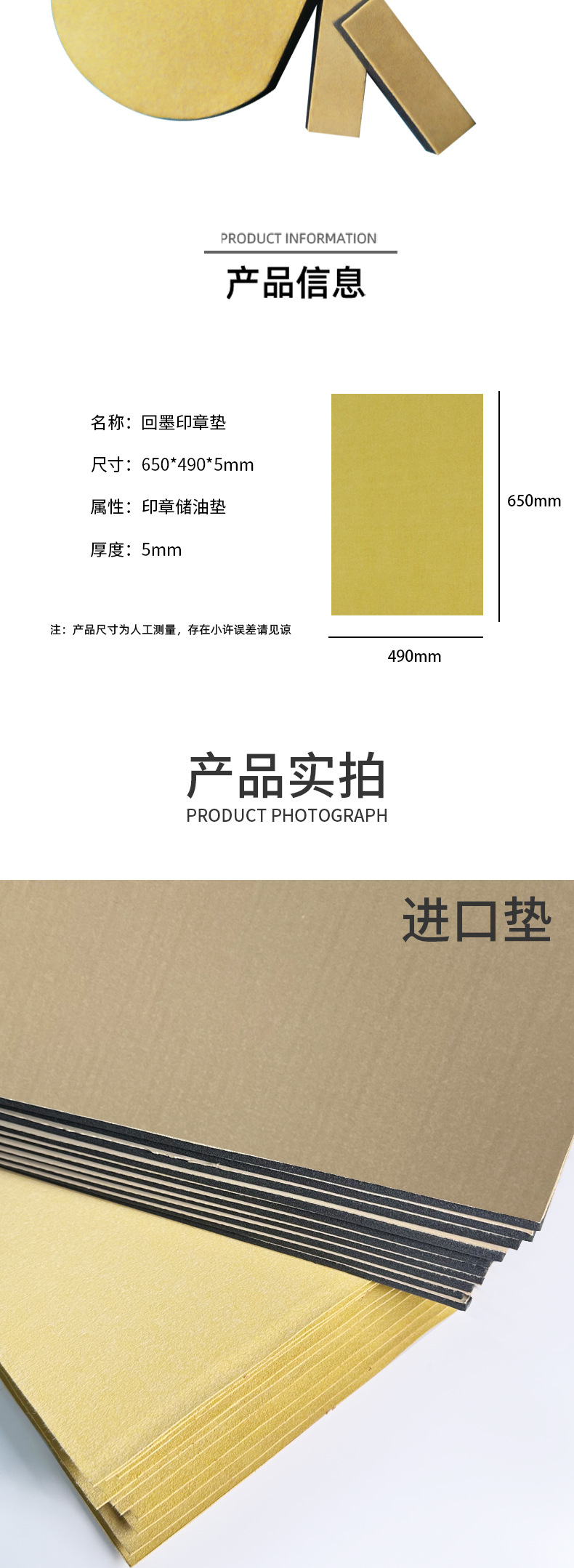 동관 잉크 백 씰 패드 반전 잉크 백 씰 고밀도 압축 스펀지 노란색 5mm 잉크 저장 패드스토어 가기