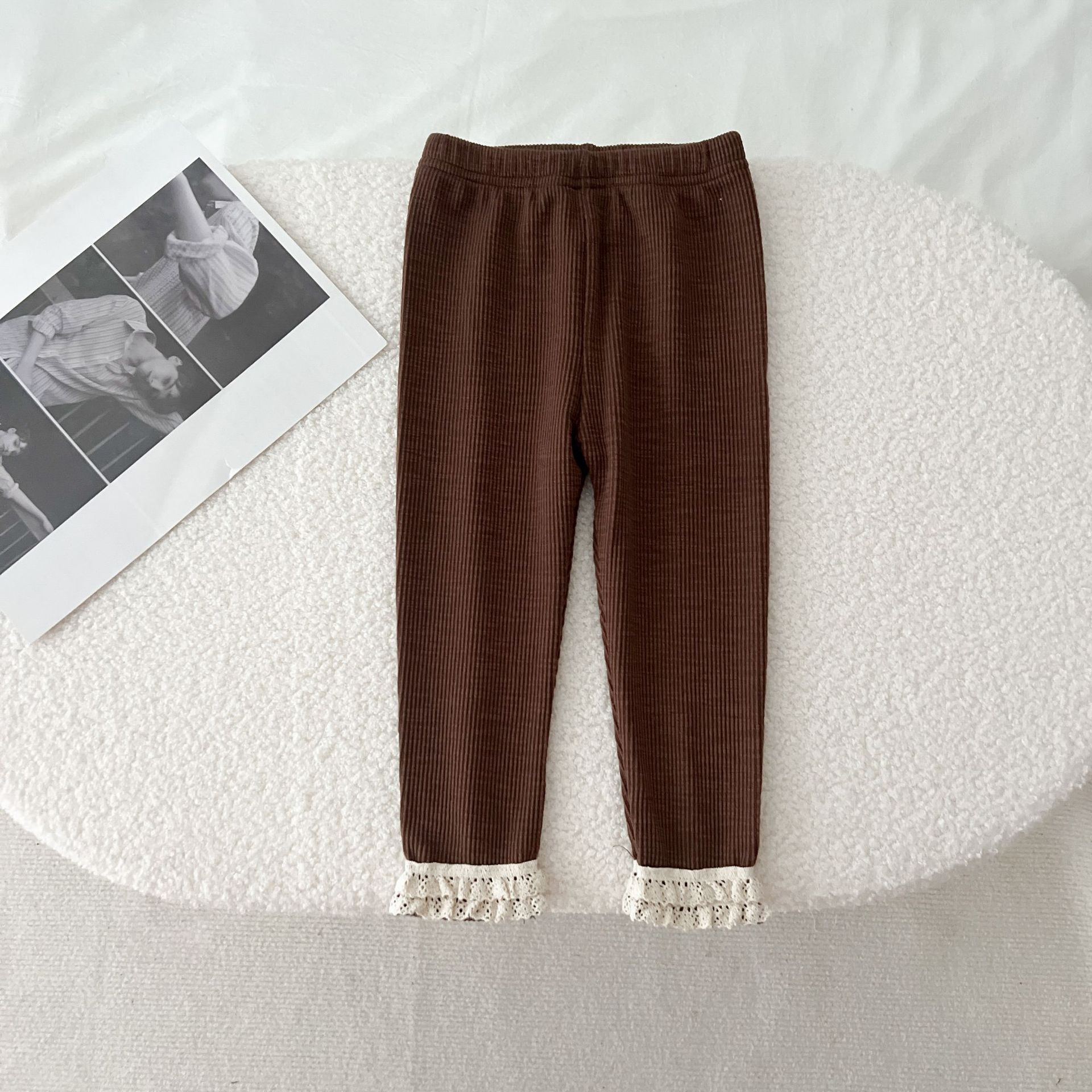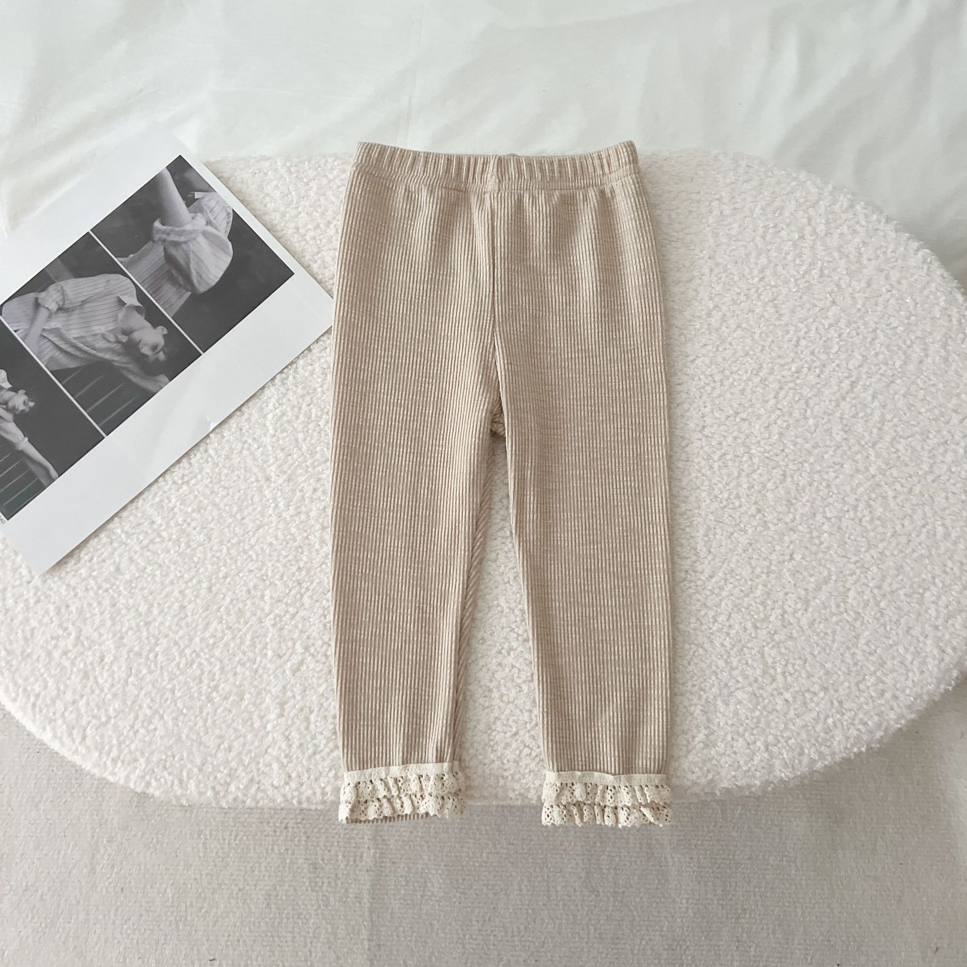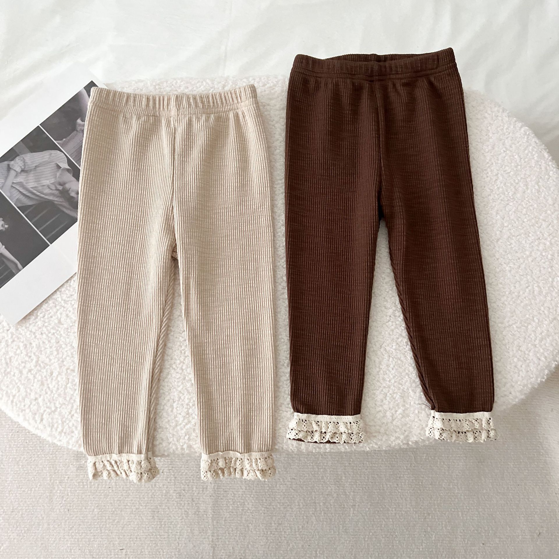 2026년 봄 신상 한국 스타일 여아 바지, 달콤한 공주풍 레이스 트림 신축성 레깅스, 아우터용 캐주얼 바지