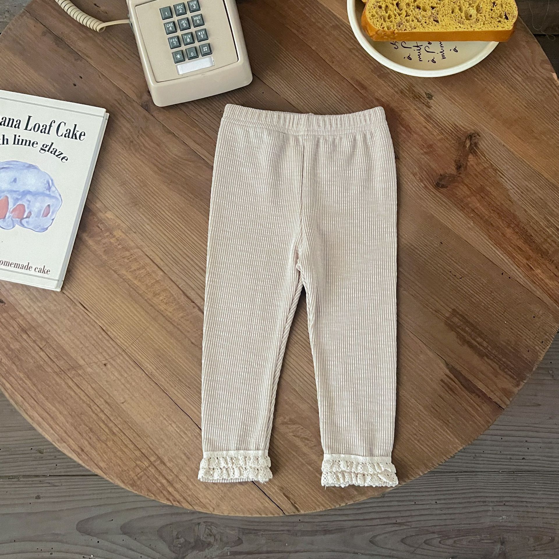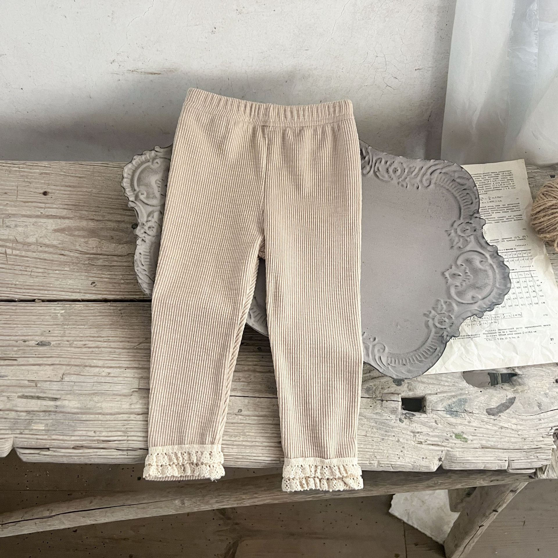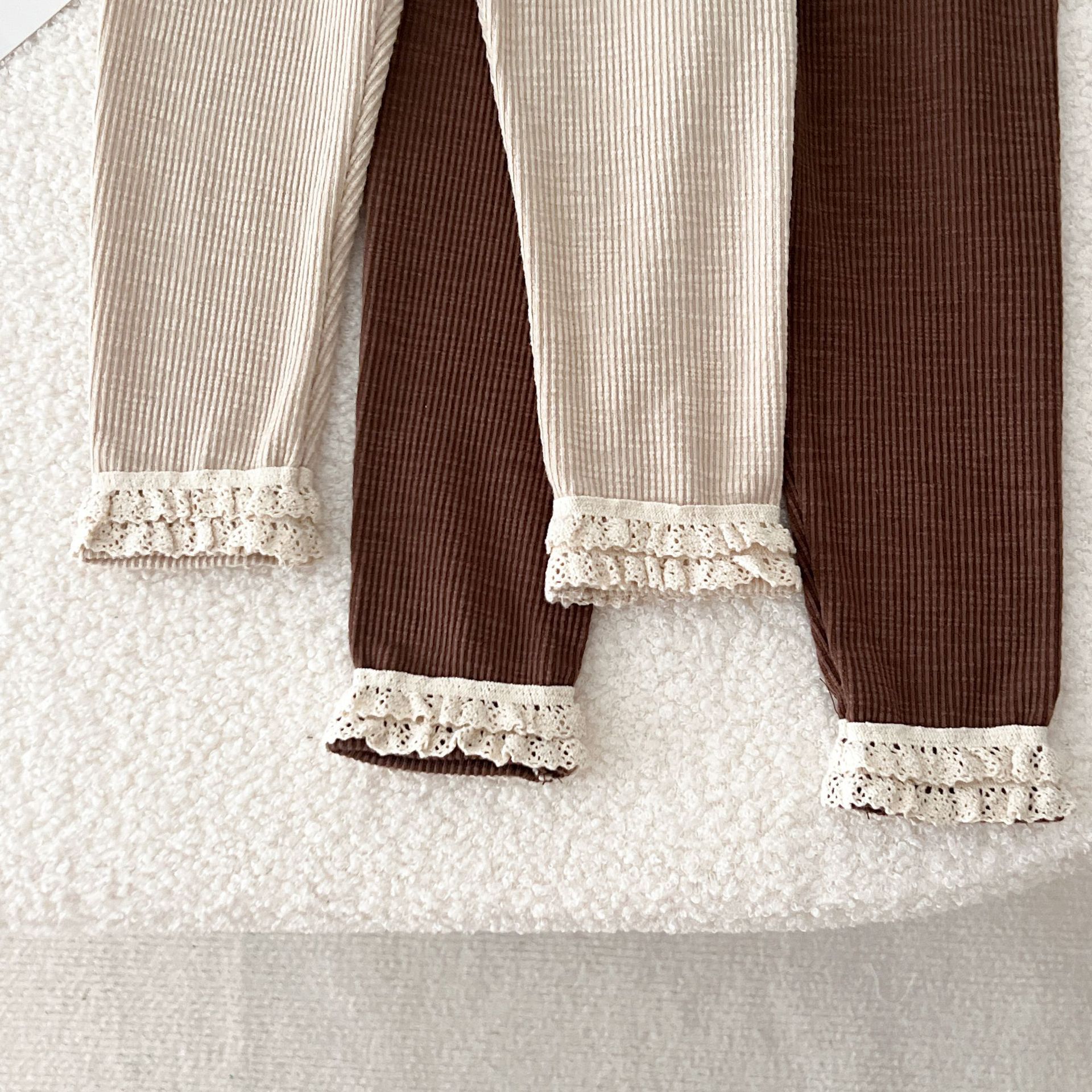 2026년 봄 신상 한국 스타일 여아 바지, 달콤한 공주풍 레이스 트림 신축성 레깅스, 아우터용 캐주얼 바지