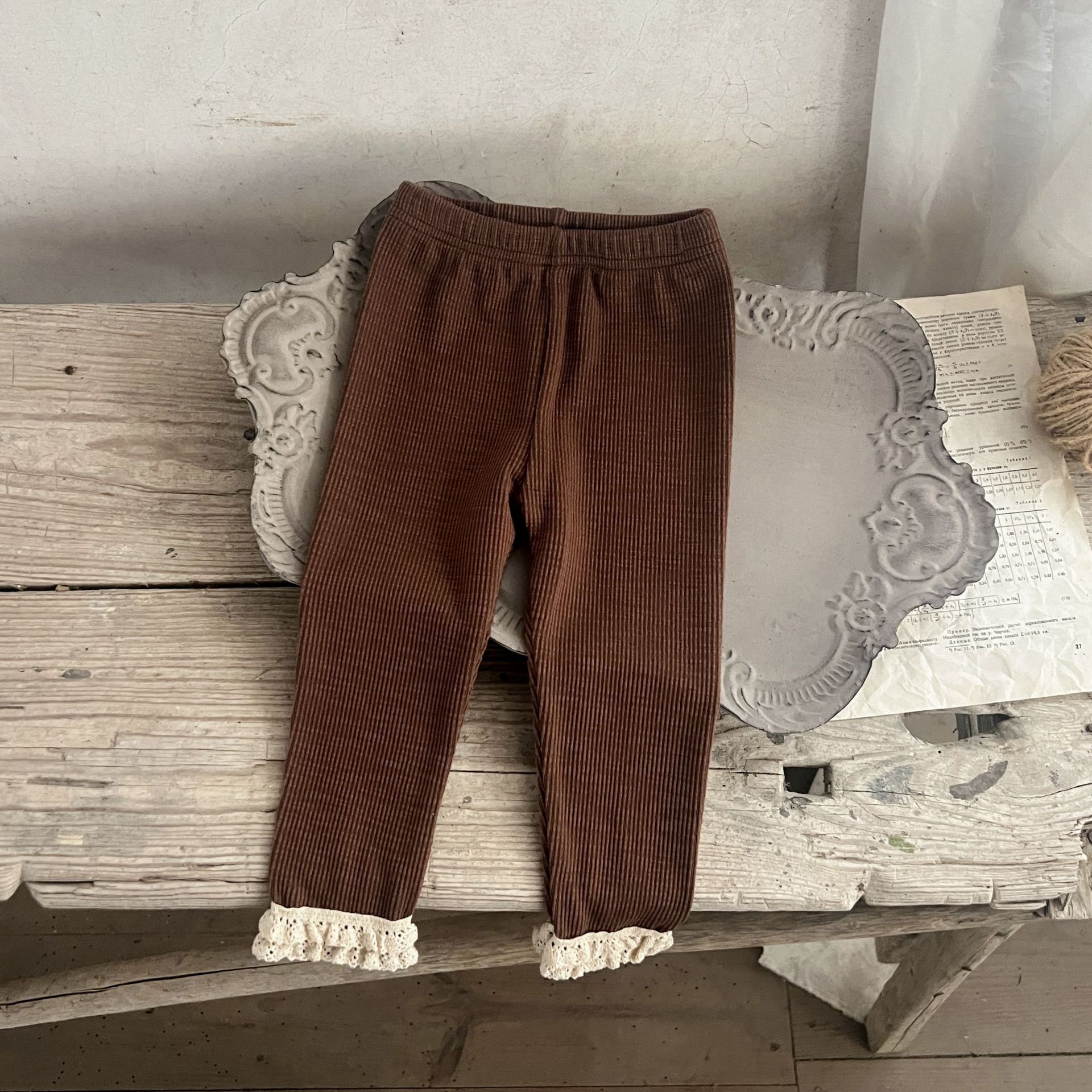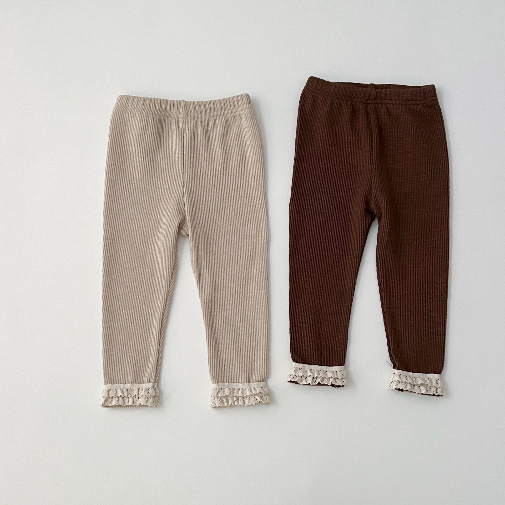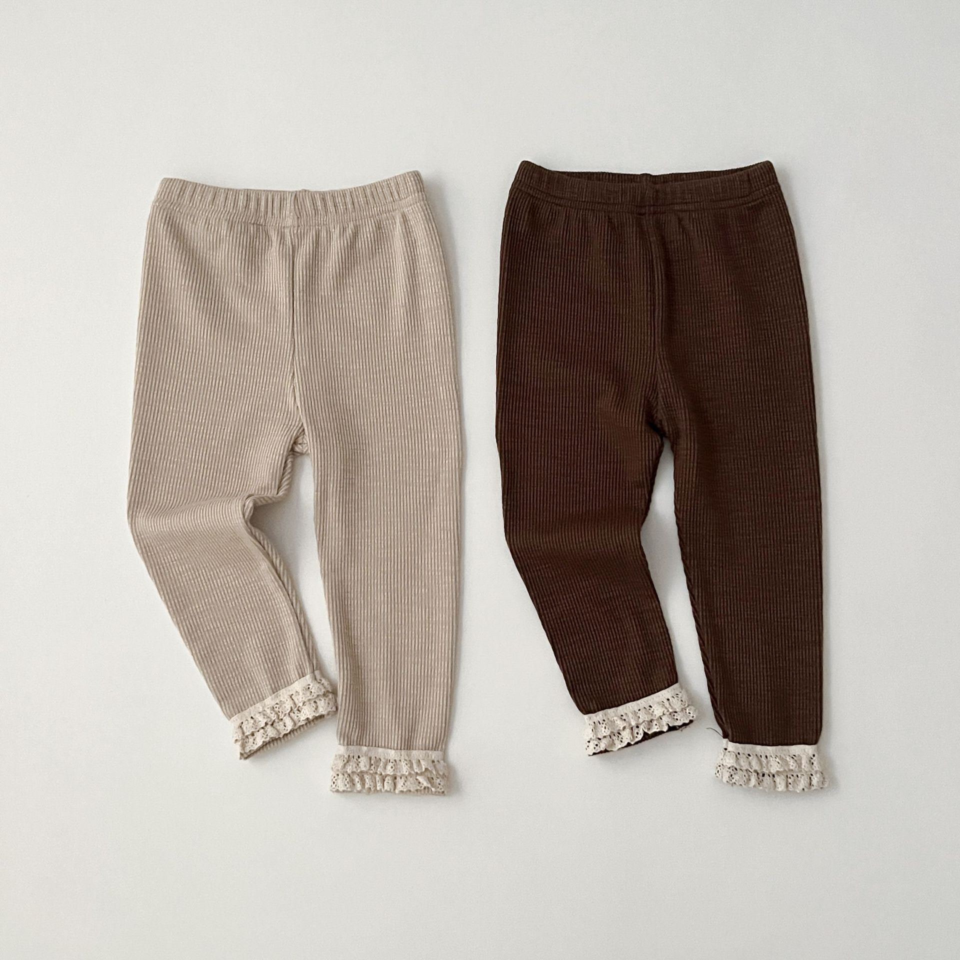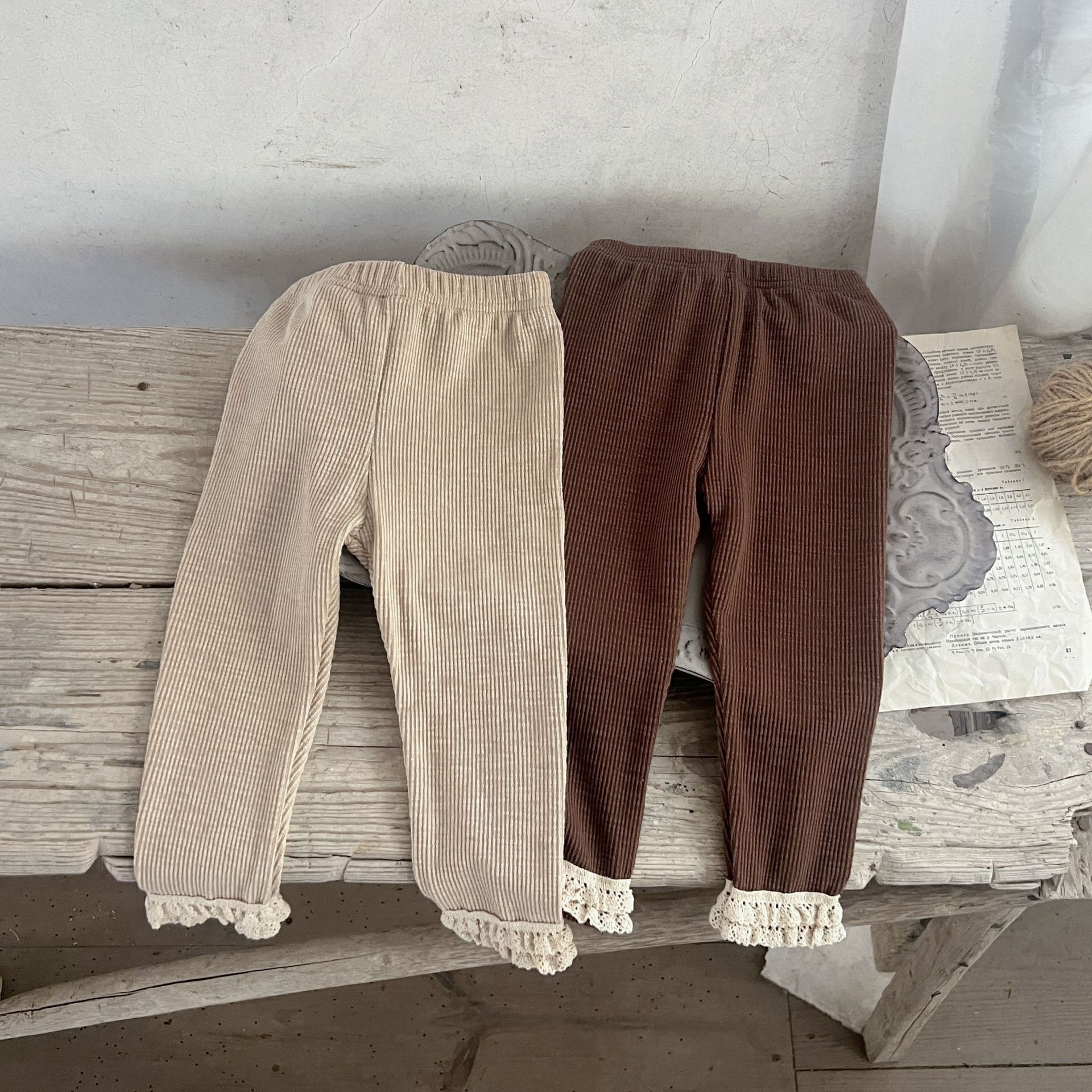 2026년 봄 신상 한국 스타일 여아 바지, 달콤한 공주풍 레이스 트림 신축성 레깅스, 아우터용 캐주얼 바지스토어 가기