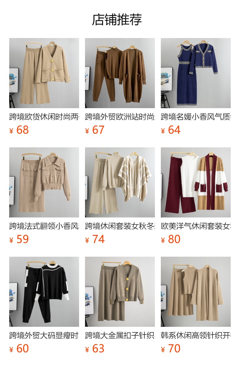 크로스보더 무역 봄가을 패션 니트 세트 여성용 롱 숄 가디건+하이넥 조끼+와이드 팬츠 3종 세트스토어 가기