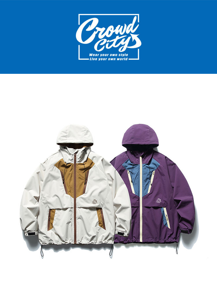 베이지에 남성복 아메리칸 스타일 트렌디 브랜드 2025 가을 겨울 신상 아웃도어 배색 후드 재킷스토어 가기