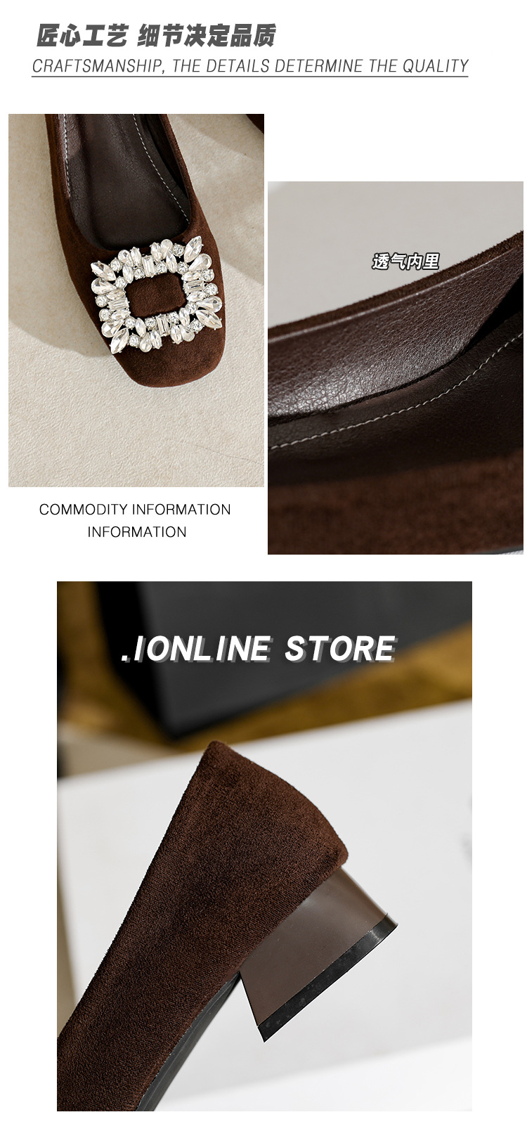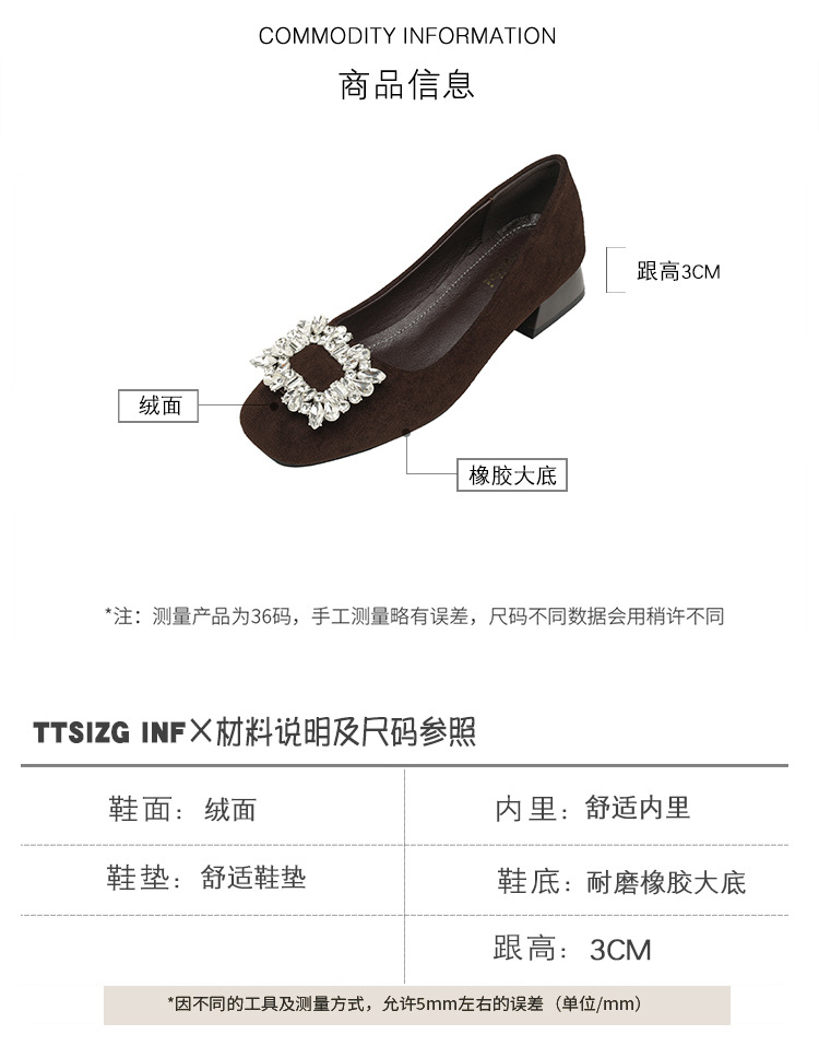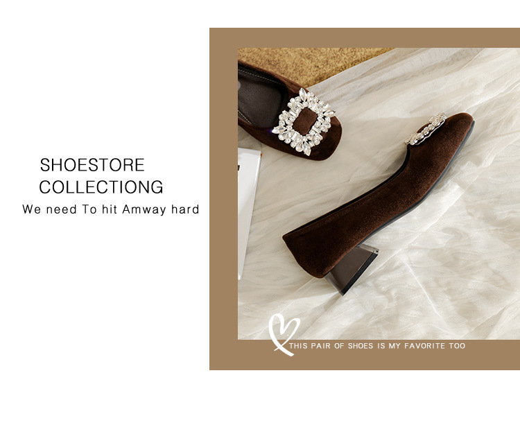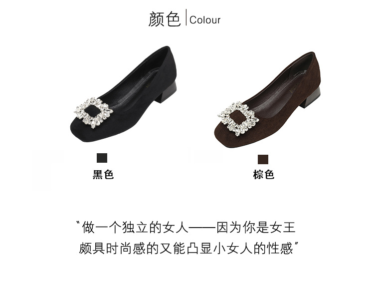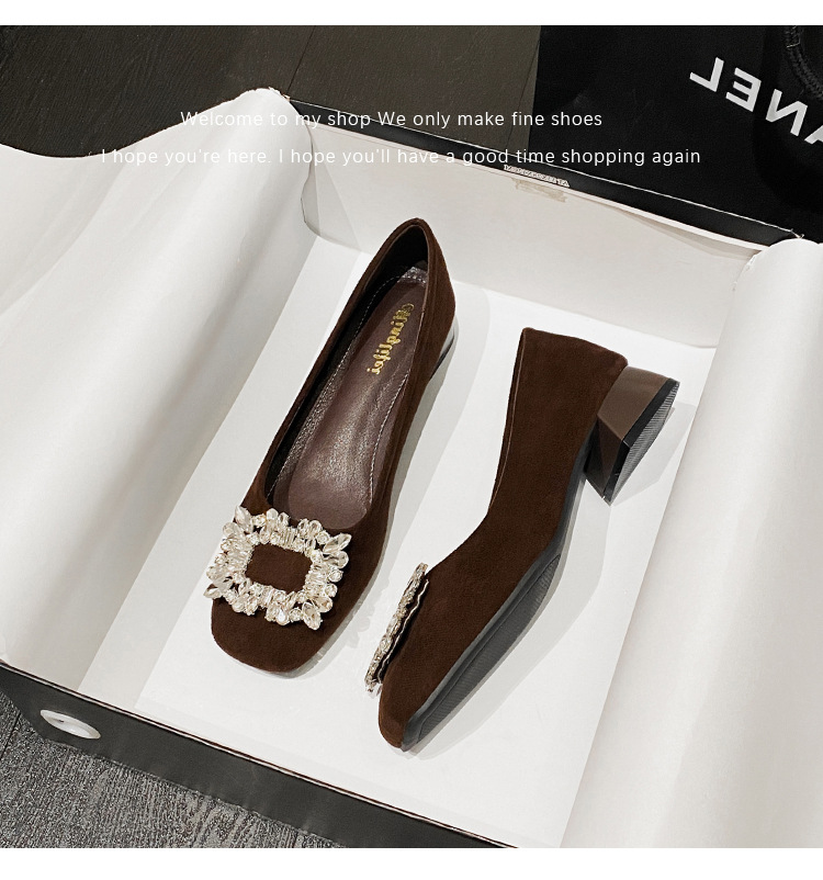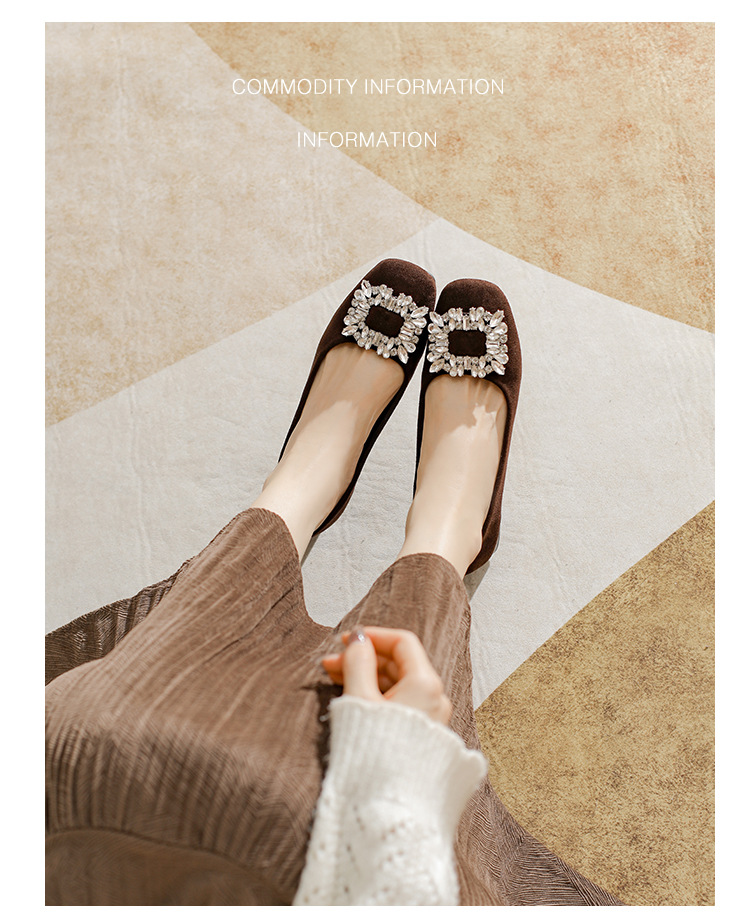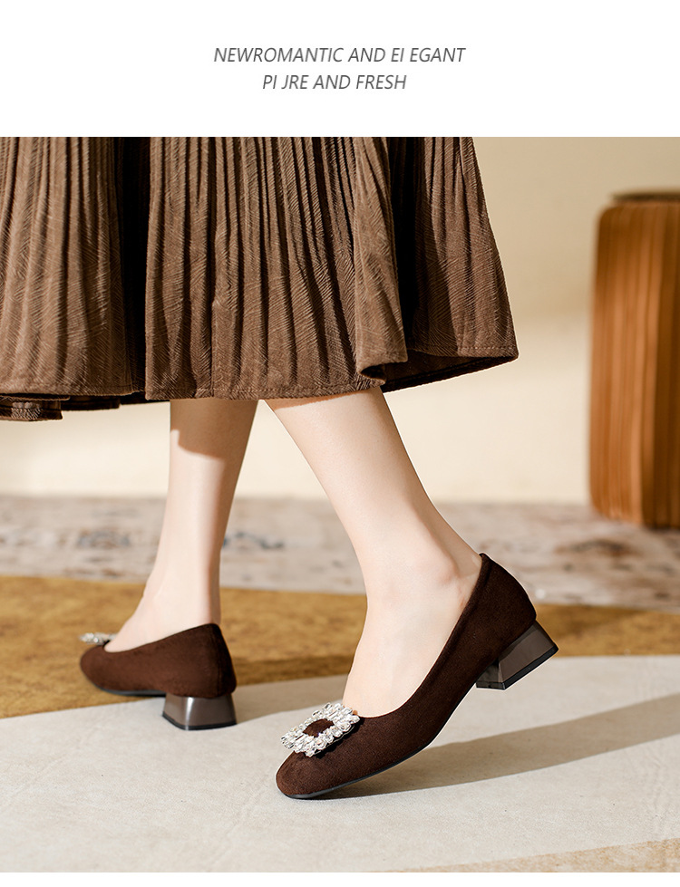프렌치 스타일의 우아한 여성용 슈즈, 스퀘어토, 얕은 입구, 2026년 봄 신상, 워터다이아몬드 장식, 두꺼운 굽, 낮은 굽의 플랫슈즈스토어 가기