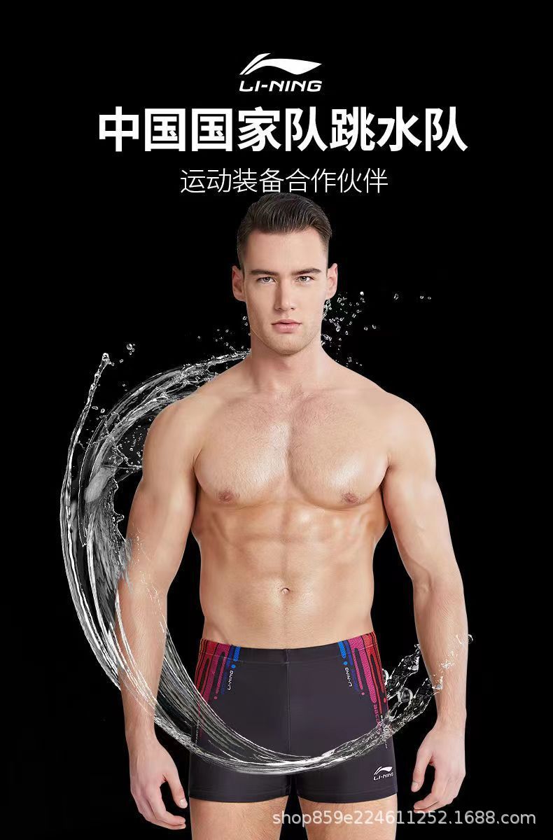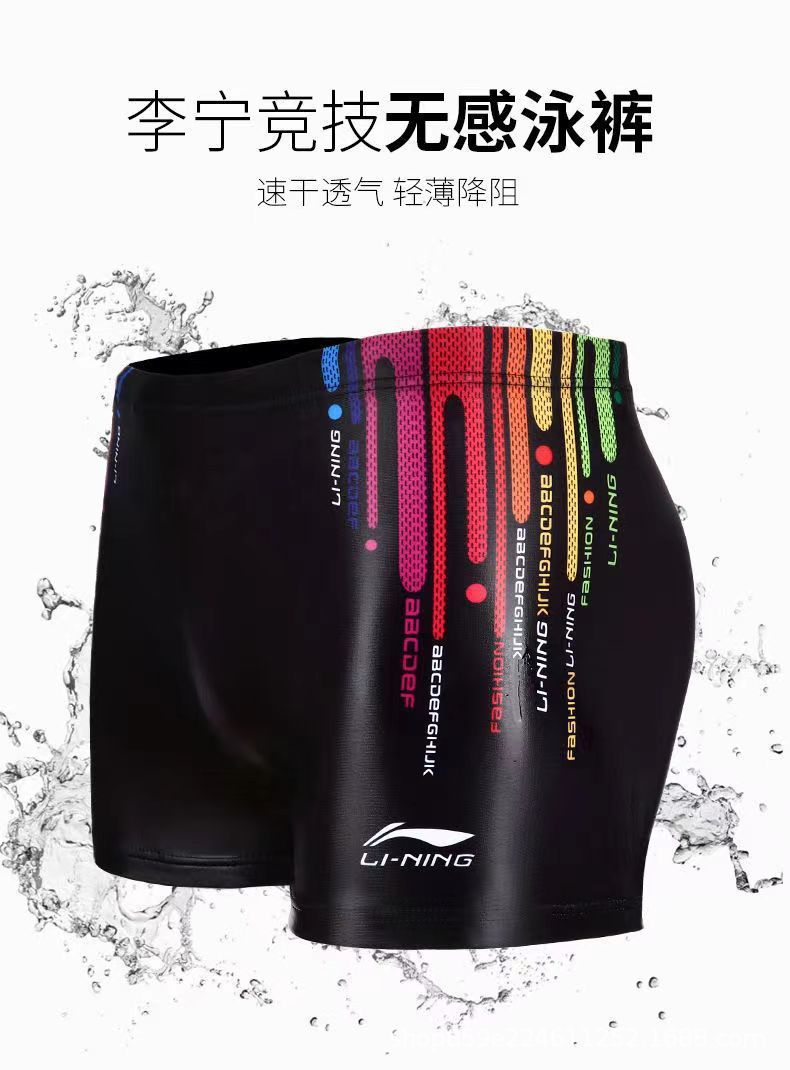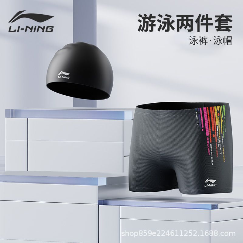 Li Ning 수영 바지 남자 전문 남자 수영 트렁크 수영 모자 수영 고글 3 피스 세트 안티 당혹감 전체 장비 세트스토어 가기