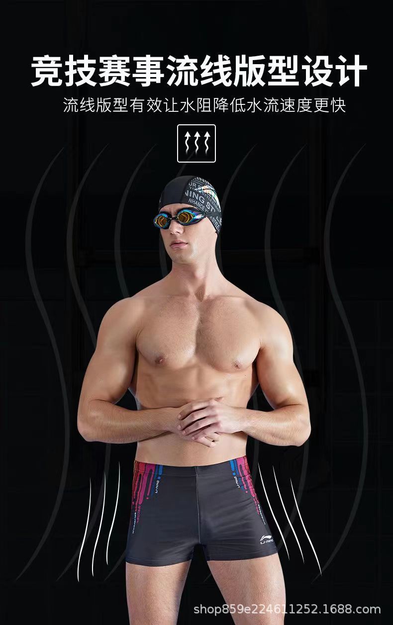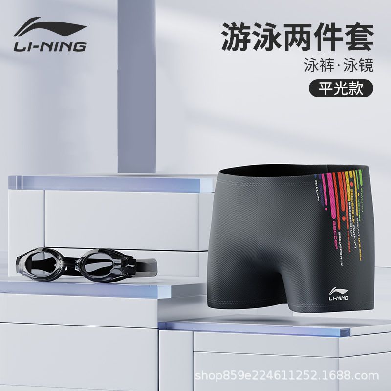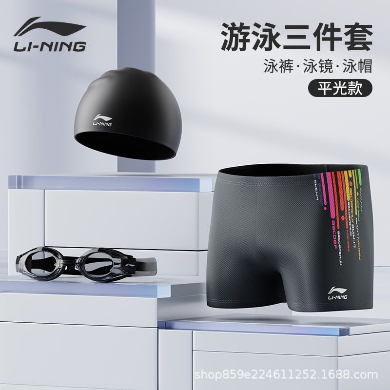 Li Ning 수영 바지 남자 전문 남자 수영 트렁크 수영 모자 수영 고글 3 피스 세트 안티 당혹감 전체 장비 세트