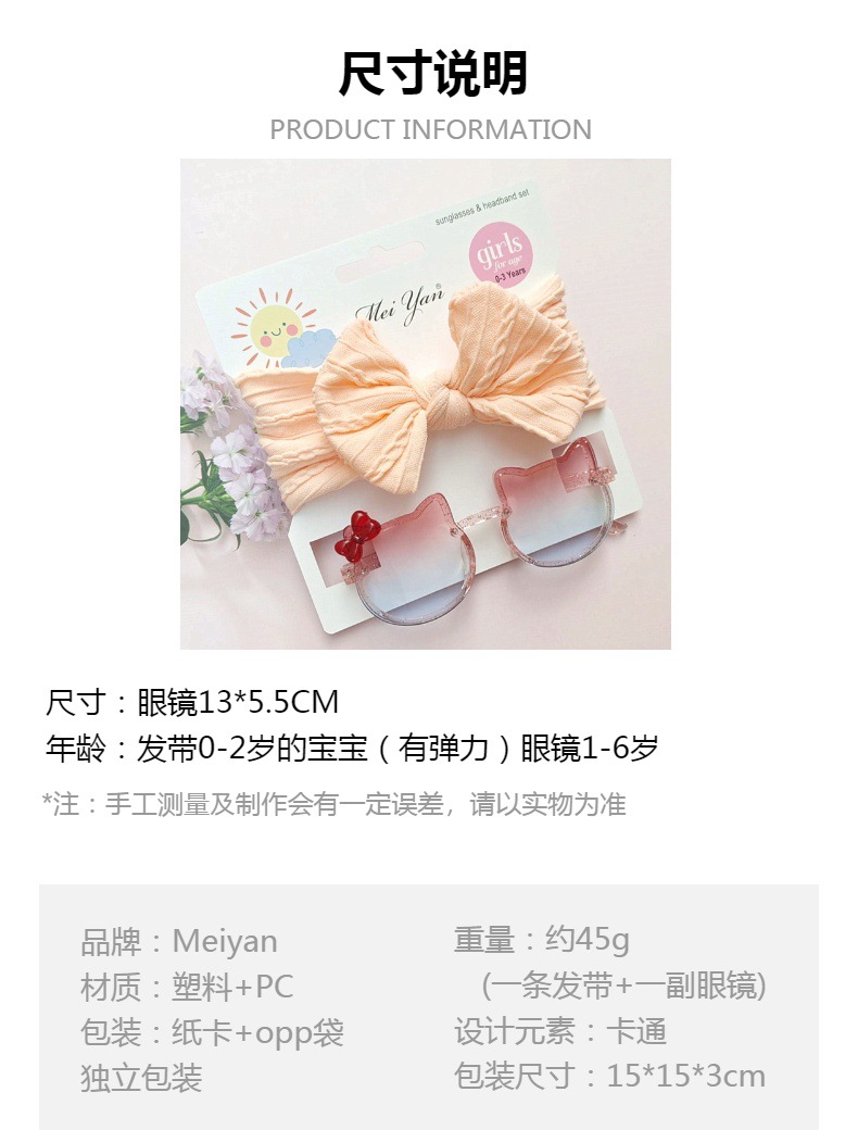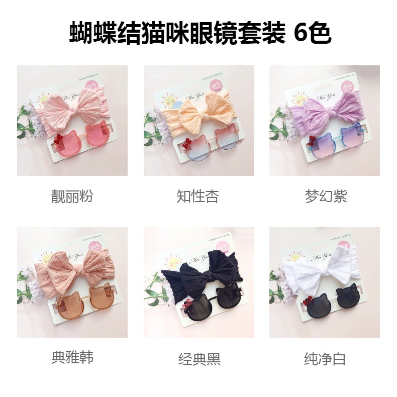 새로운 국경 어린이 머리 장식 아기 활 나일론 와이드 헤어 밴드 리틀 프린세스 여름 고양이 선글라스 투피스 세트스토어 가기