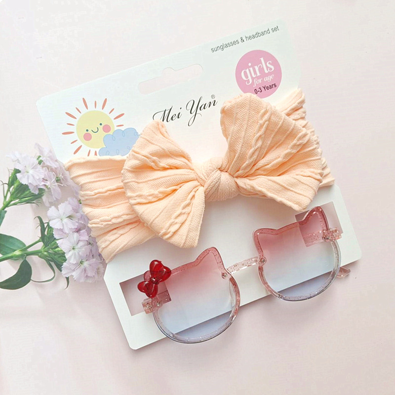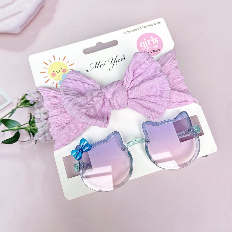 새로운 국경 어린이 머리 장식 아기 활 나일론 와이드 헤어 밴드 리틀 프린세스 여름 고양이 선글라스 투피스 세트