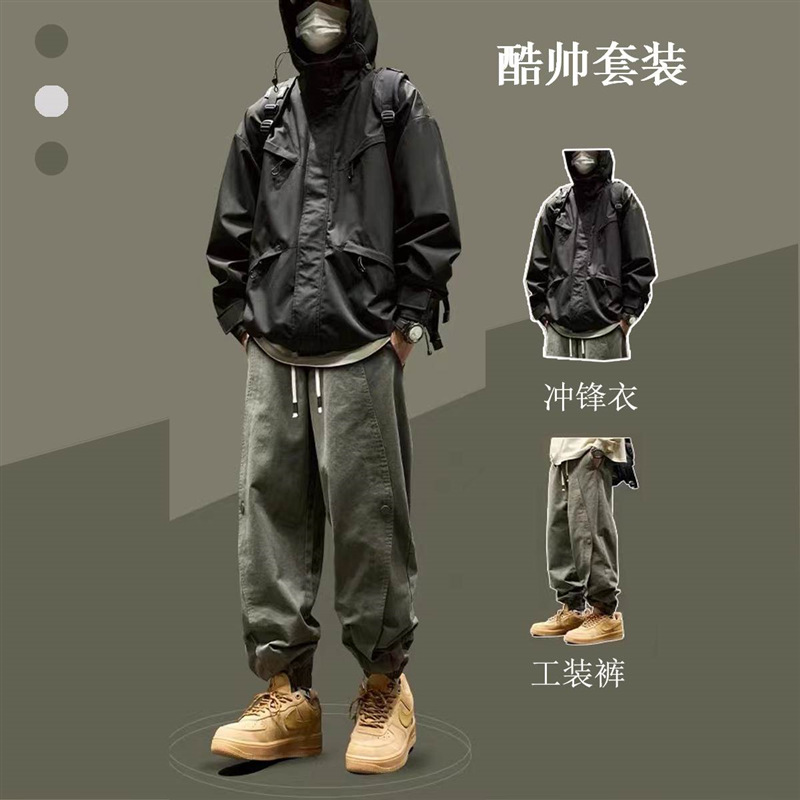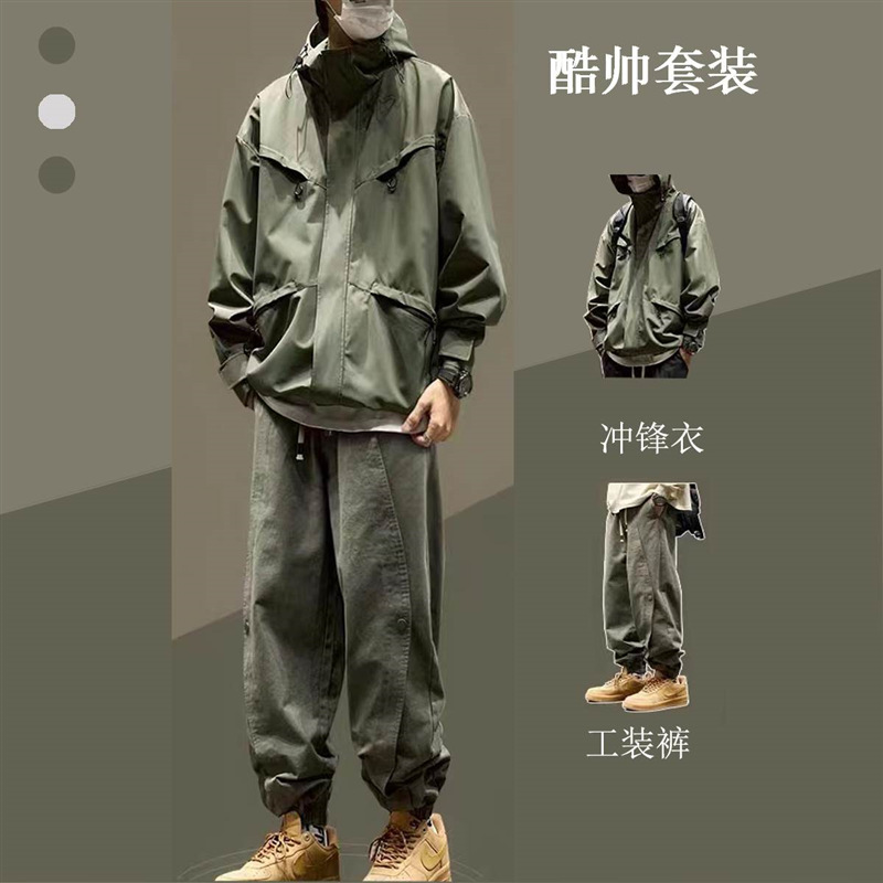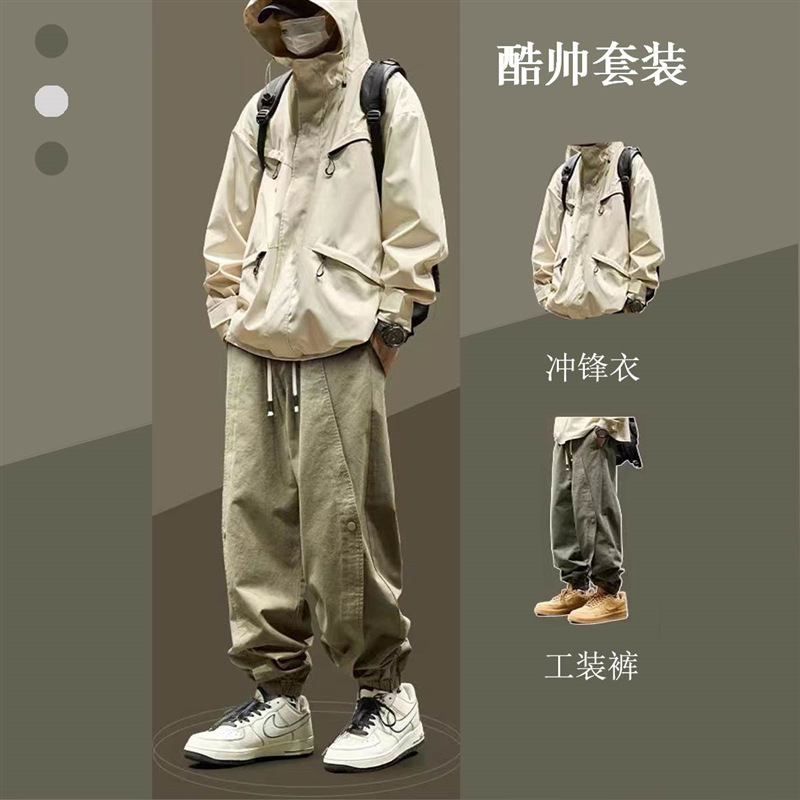 중학생 자켓 소년 자켓 봄과 가을 2024 새로운 작업복 재킷 세트 어울리는 옷 세트