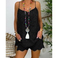 2024 국경을 넘는 유럽과 미국의 우아한 민소매 드로 스트링 러플 중공 캐미솔 반바지 세트스토어 가기