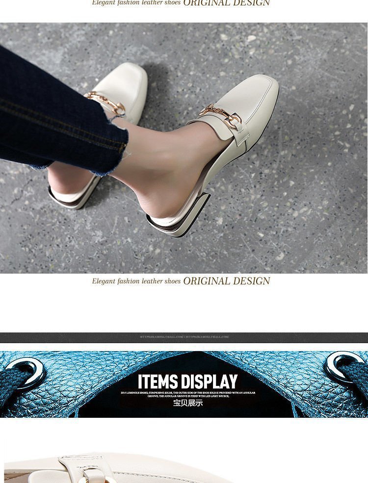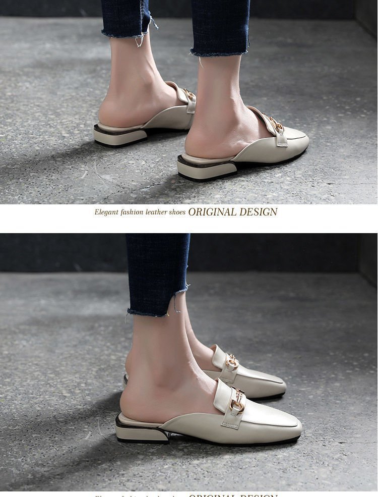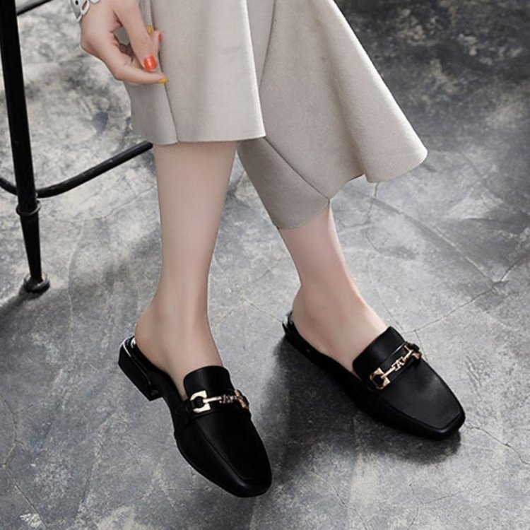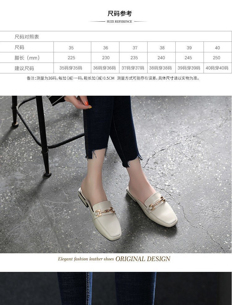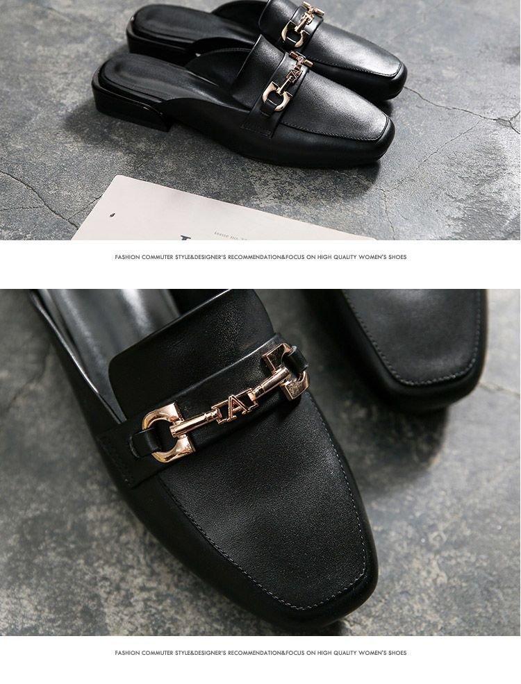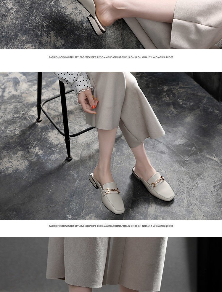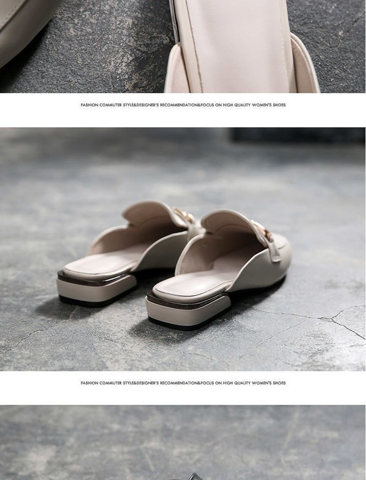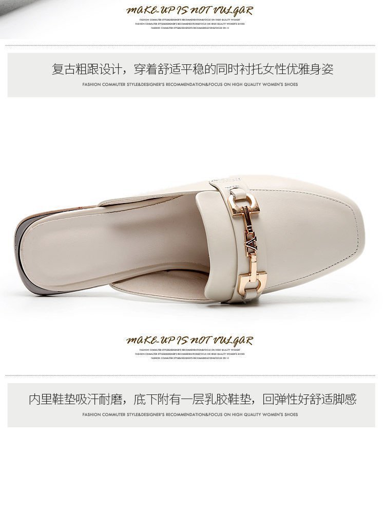 2024 봄과 여름 새로운 패션 올 매치 아우터 착용 청키 힐 로퍼 부드러운 바닥 미끄럼 방지 가죽 표면 폐쇄 발가락 하프 슬리퍼 여성용 신발