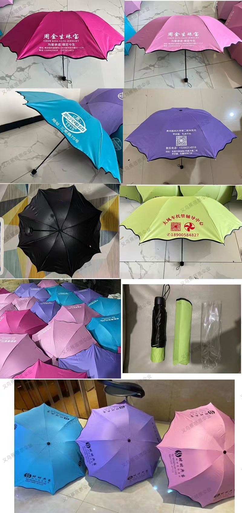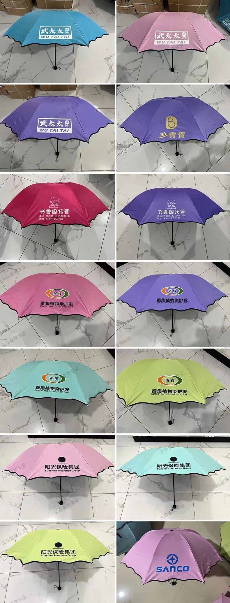 맑고 비오는 이중 목적 자외선 차단 블랙 우산 인쇄 로고 뷰티 샵 물 피는 광고 우산