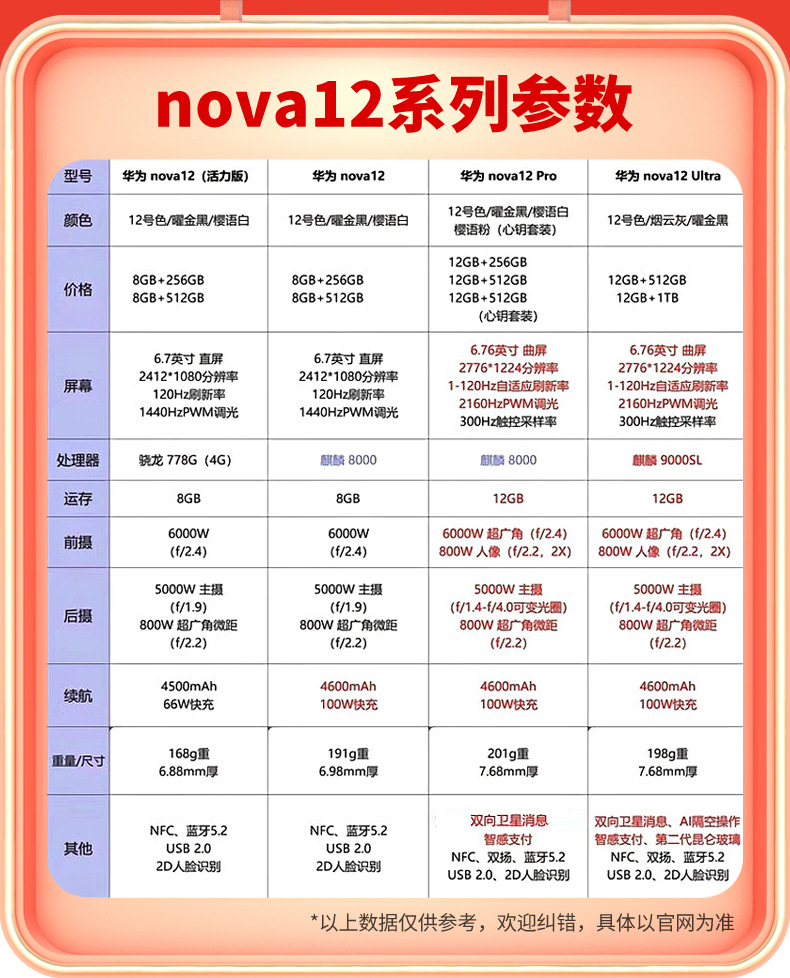 • nova12pro/12G+512G