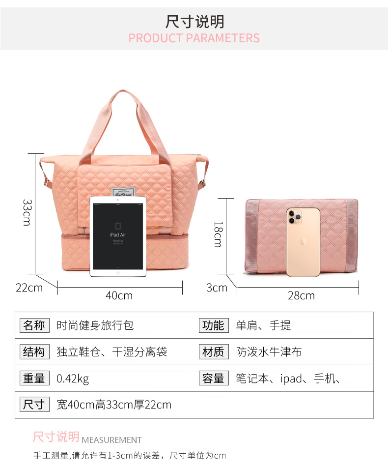 여행 가방 접이식 대형 피트니스 수하물 가방 단거리 습식 및 건식 휴대용 분리 출장 대용량 보관 대기 중