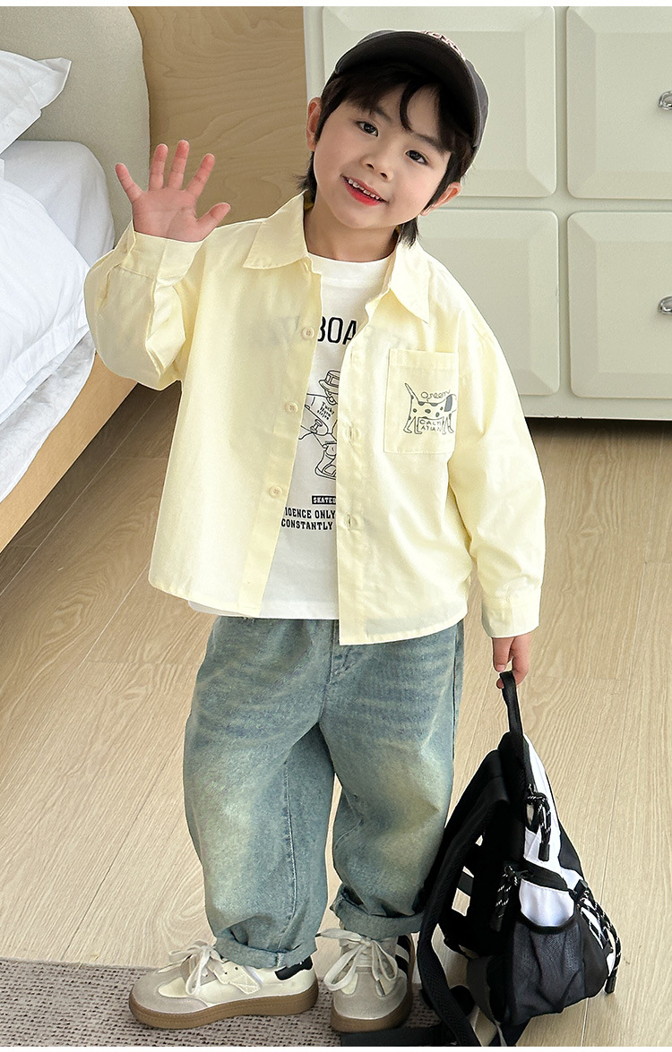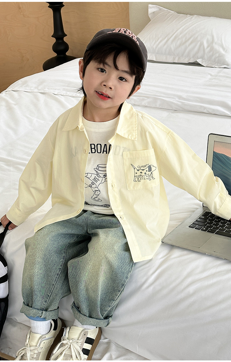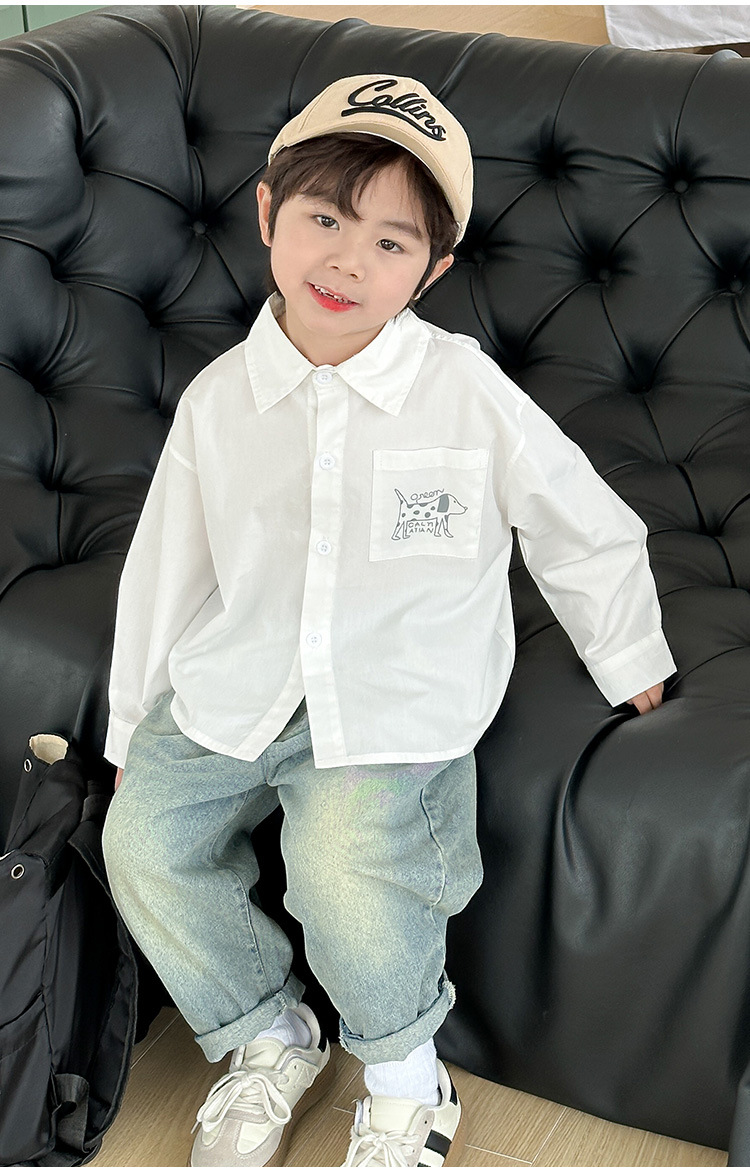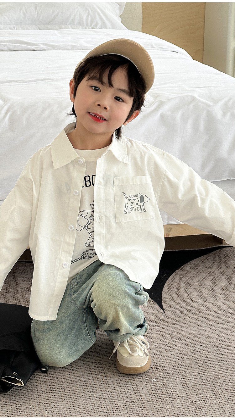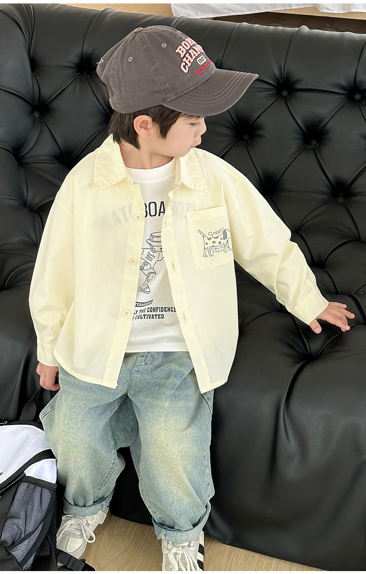 아동복, 남아용 가을 프린트 캐주얼 셔츠 재킷, 아동용 베이비 셔츠, 남아용 긴팔 셔츠스토어 가기