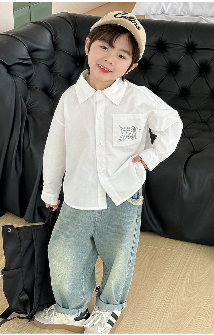 아동복, 남아용 가을 프린트 캐주얼 셔츠 재킷, 아동용 베이비 셔츠, 남아용 긴팔 셔츠