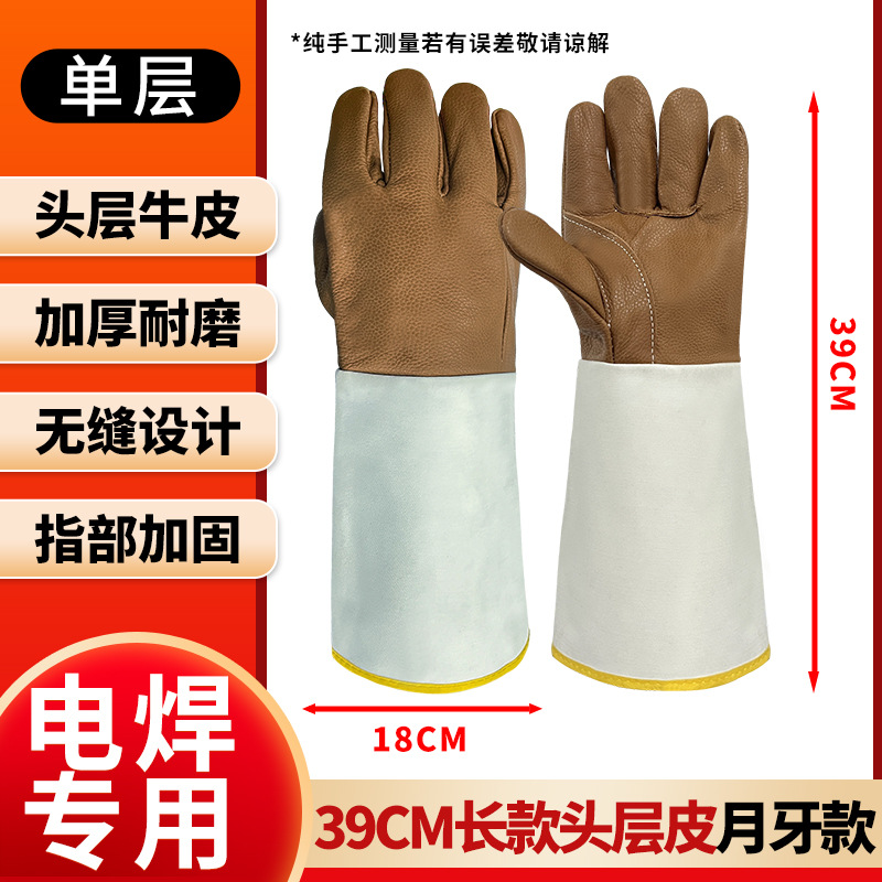용접 장갑 안티 스케일링 Cowhide 소프트 고온 내성 화염 지연 용접 용 두꺼운 긴 보호 장갑