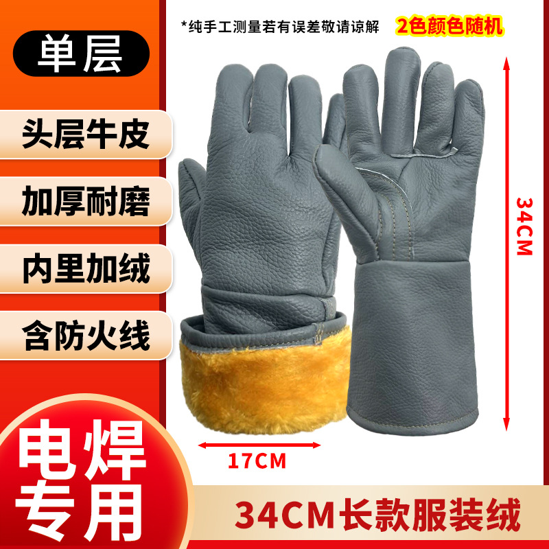 용접 장갑 안티 스케일링 Cowhide 소프트 고온 내성 화염 지연 용접 용 두꺼운 긴 보호 장갑스토어 가기