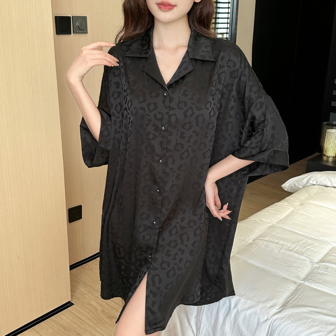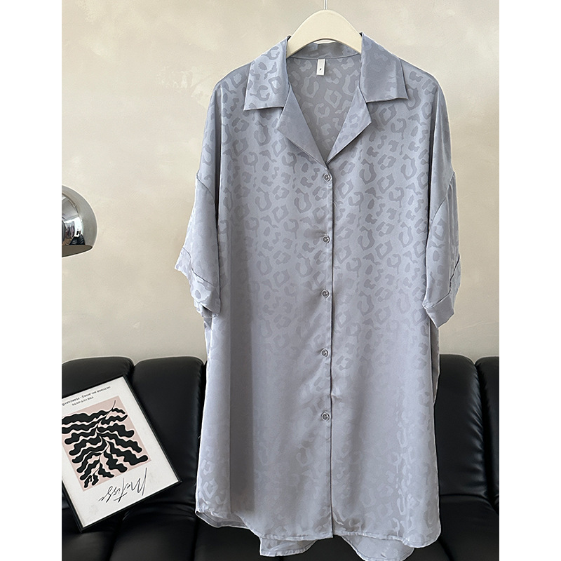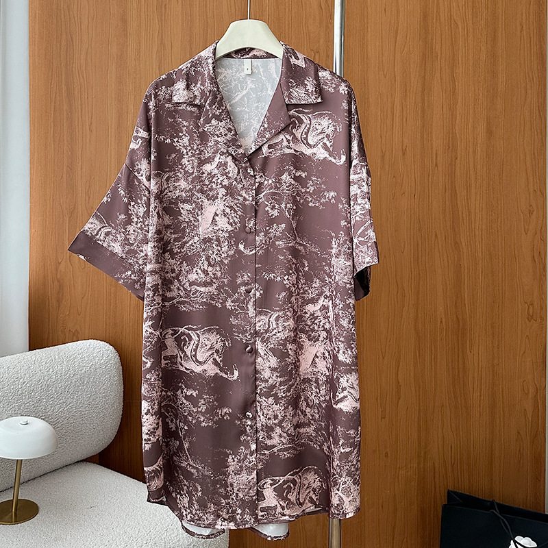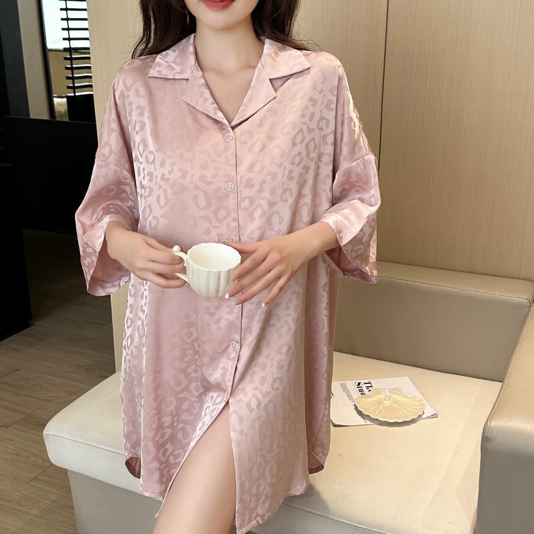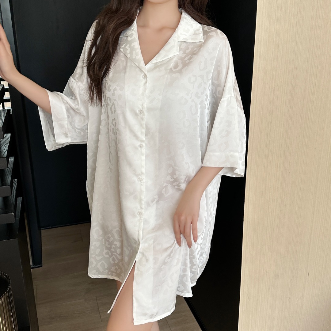 한국식 심플한 스타일 셔츠 원피스 잠옷 여성 실크 긴소매 봄과 여름 가정복 세트 도매