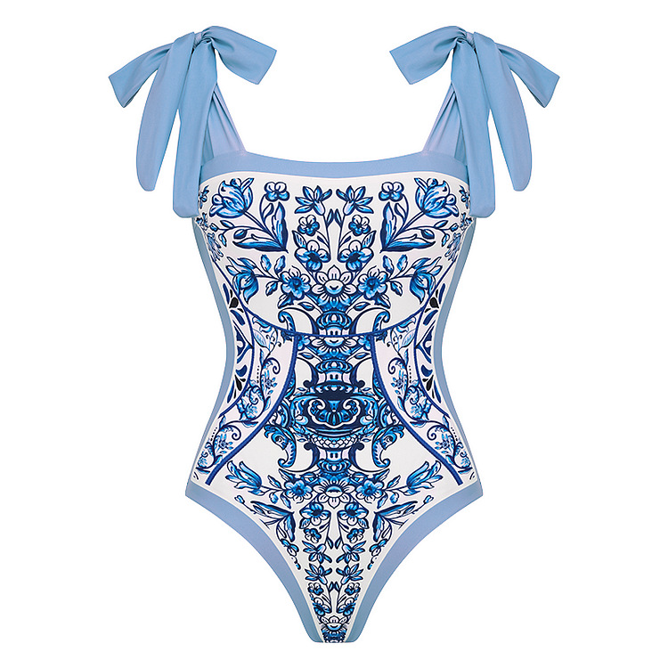 2023 새로운 패션 트렌드 섹시한 수영복 크로스 보더 프린트 여성 원피스 슈트 서스펜더 유럽과 미국의 수영복 도매