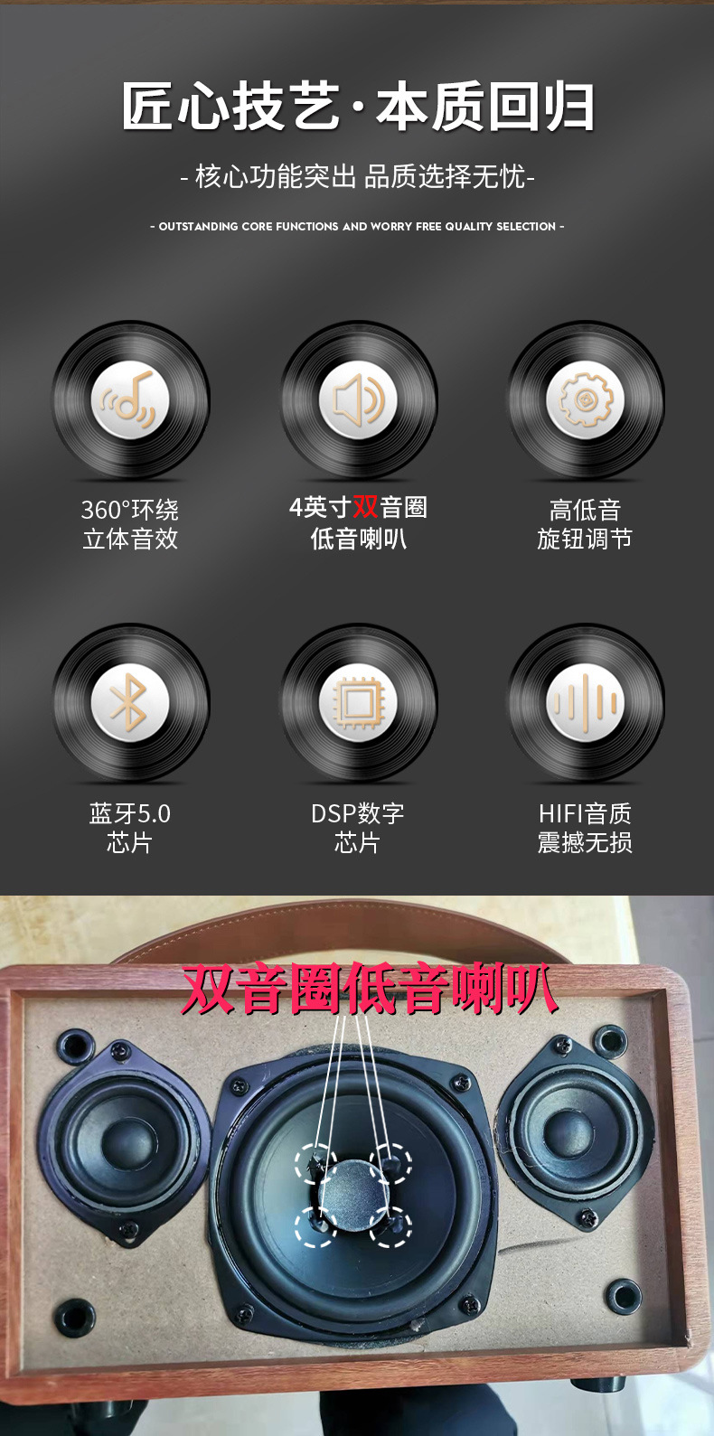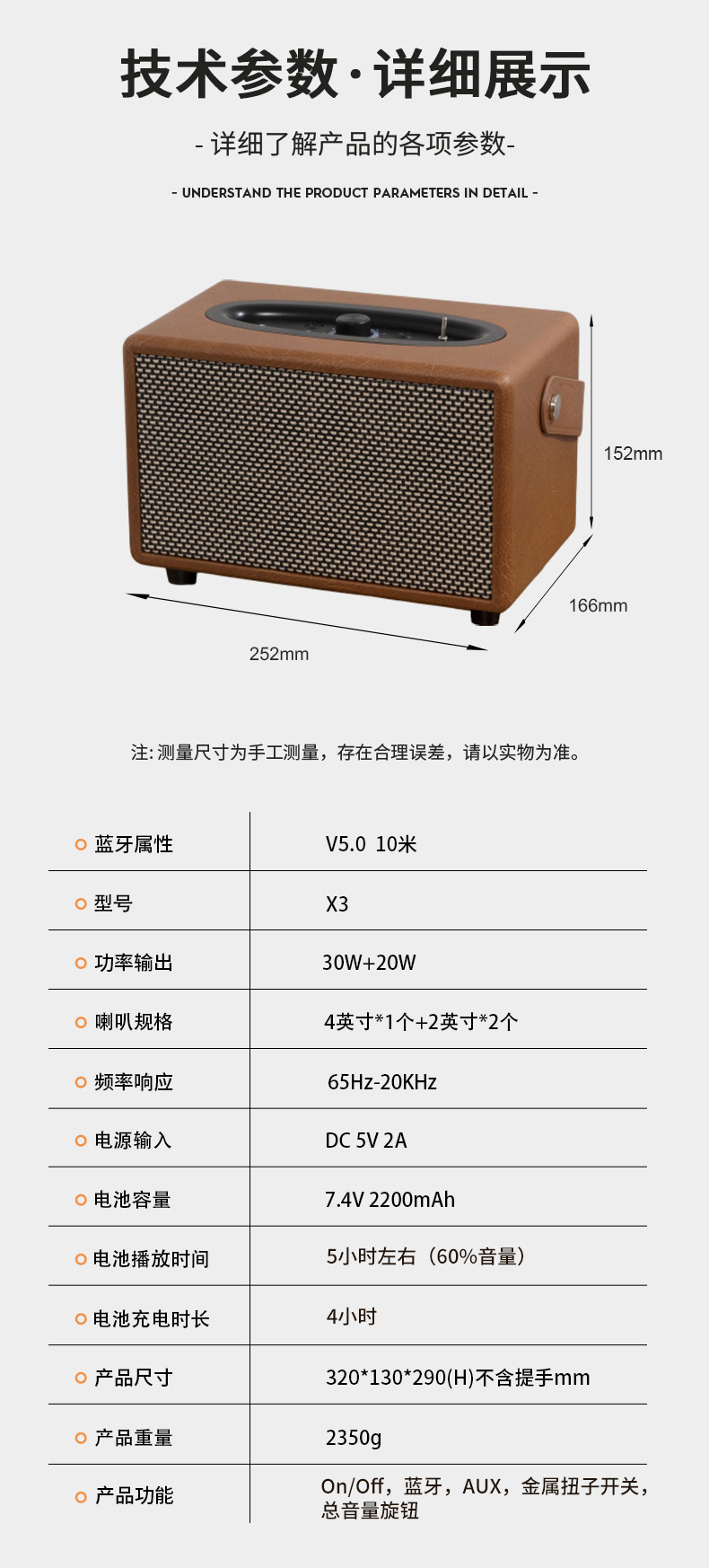 木质蓝牙音箱无线皮革箱桌面电脑低音炮手提便携式音响复古音箱马歇尔音箱