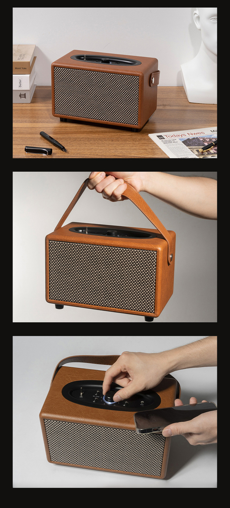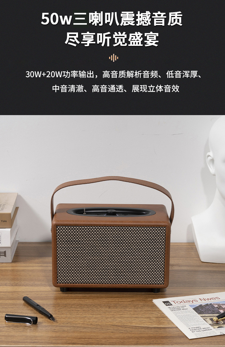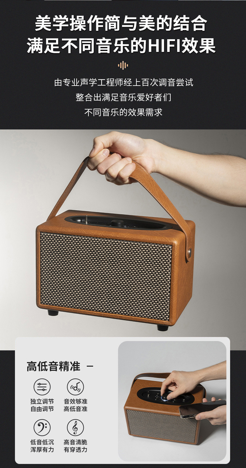 无线蓝牙音箱 手提马歇尔风 桌面音响 带皮革纹古老 经典提带音箱 提手音响