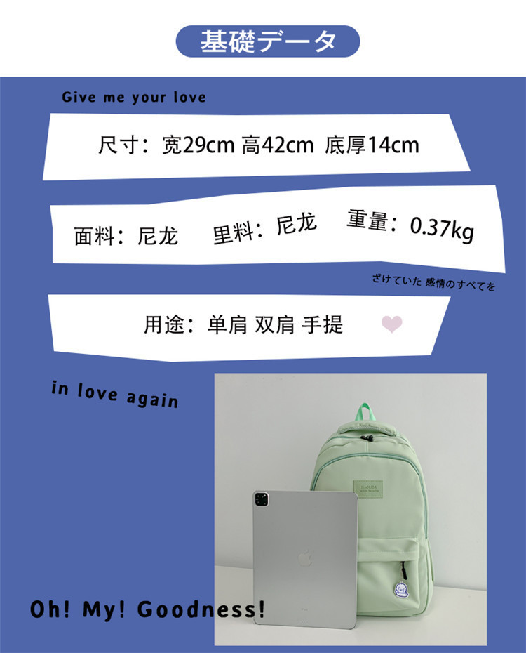 중학교 학생을위한 새로운 트렌디 한 한국식 여성 가방 모리 스타일 신선한 단색 학교 가방 대용량 다기능 배낭