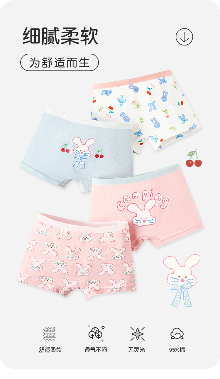 어린이 속옷 도매 봄과 여름 새로운 귀여운 만화 소녀 복서 팬티 클립 없음 PP 순수 코튼 아기 소녀 속옷