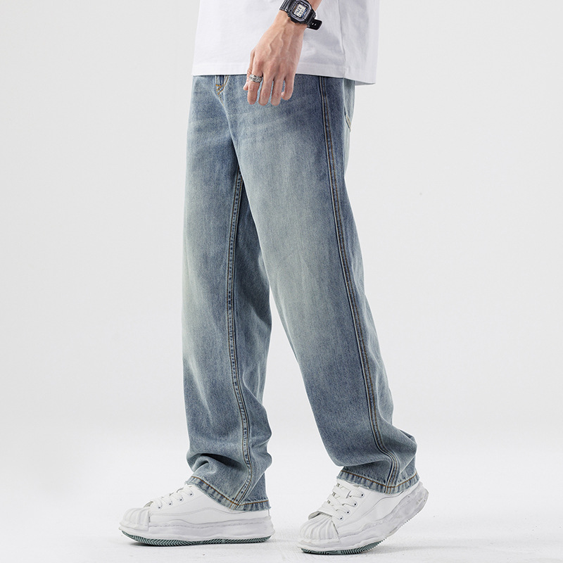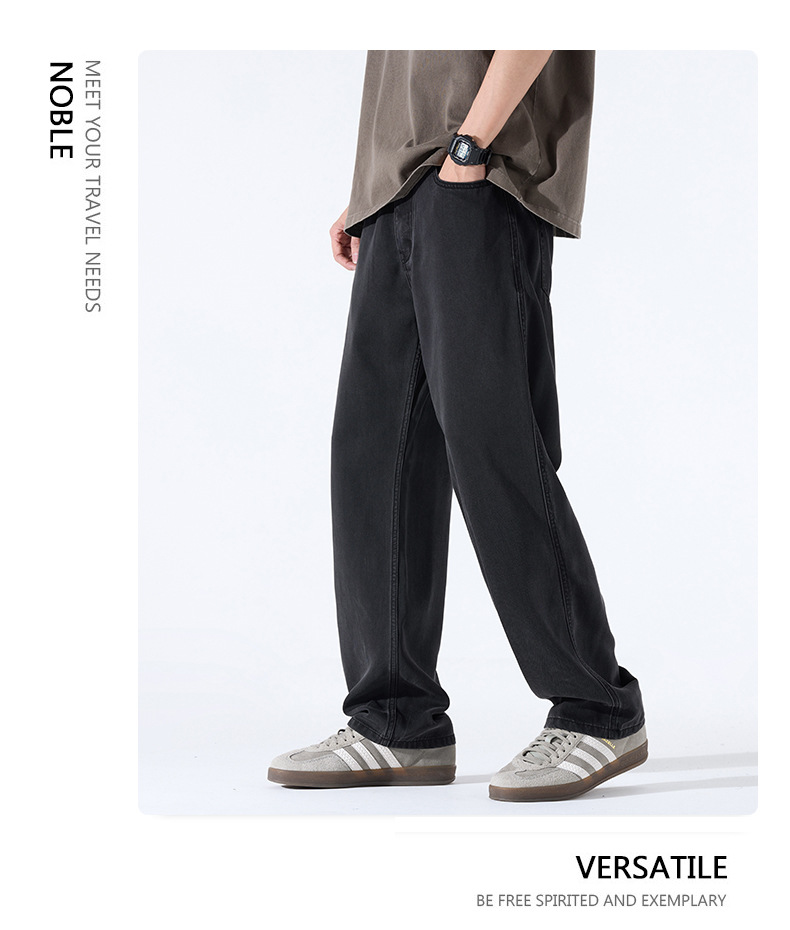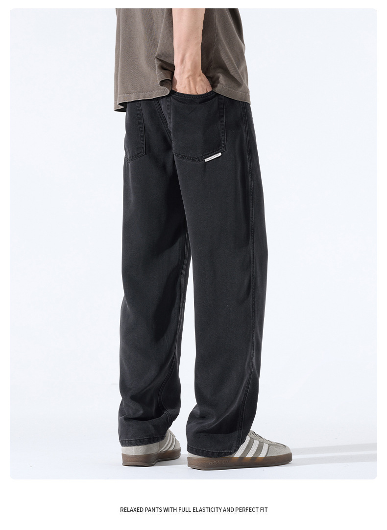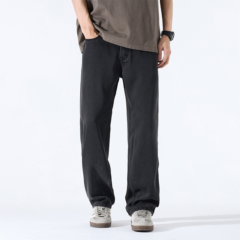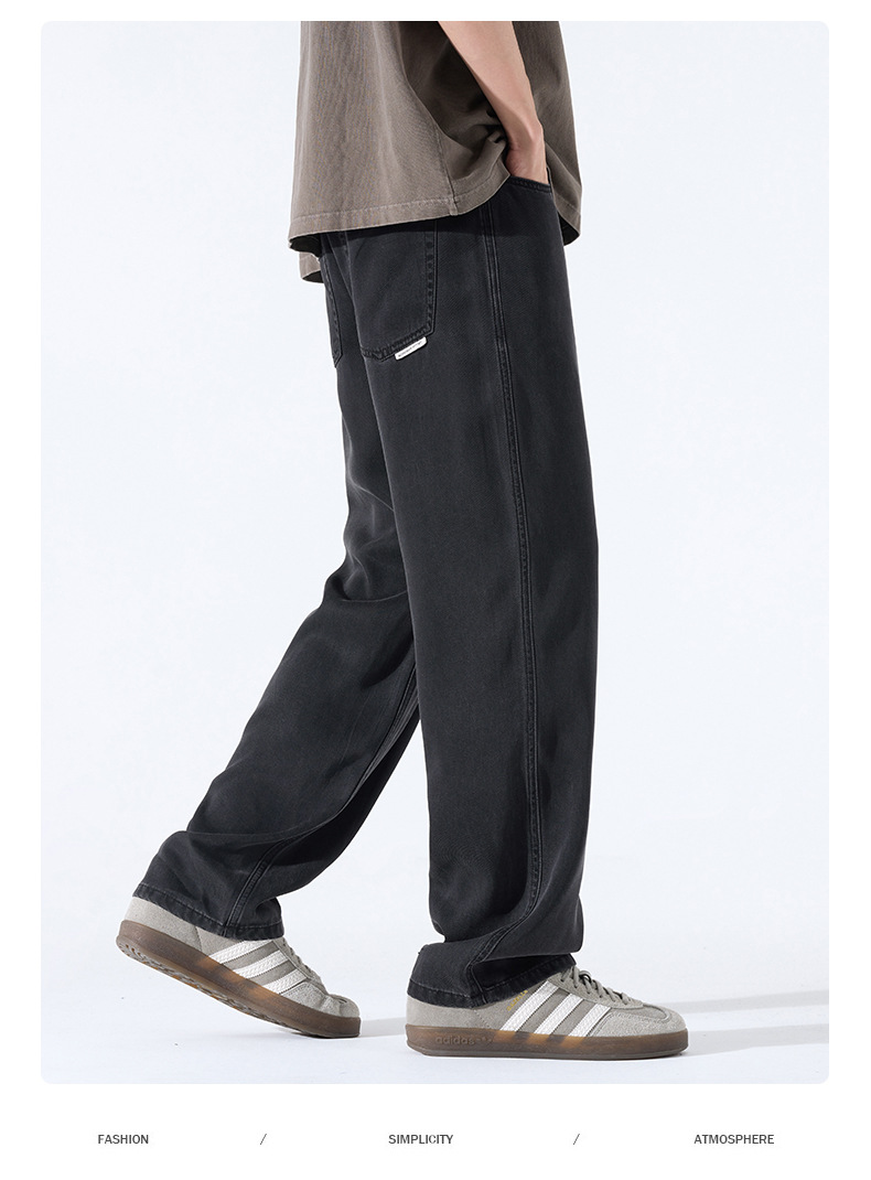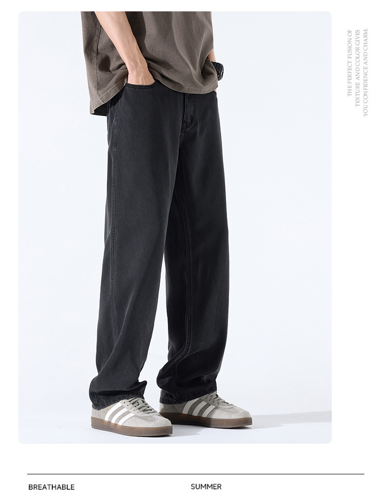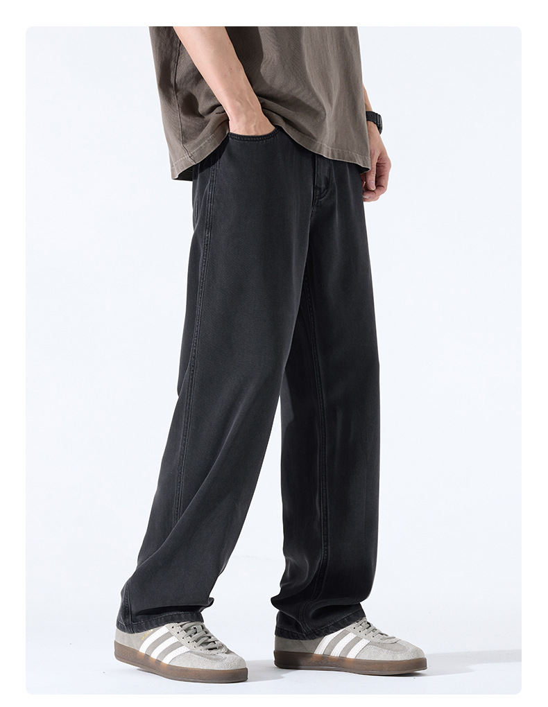 Lyocell Tencel 청바지 남성 봄과 여름 얇은 느슨한 스트레이트 대형 아이스 실크 투약 넓은 다리 긴 유행 바지스토어 가기