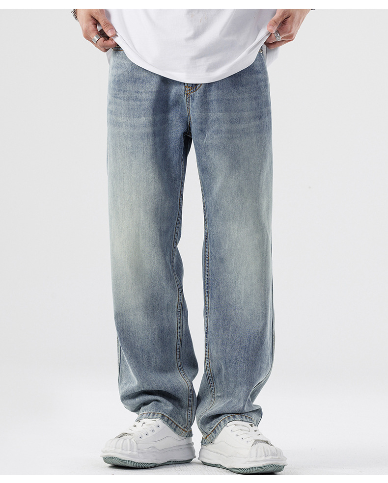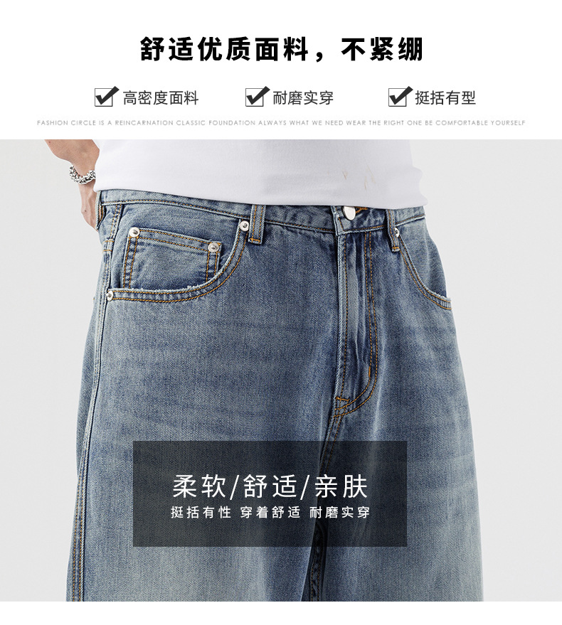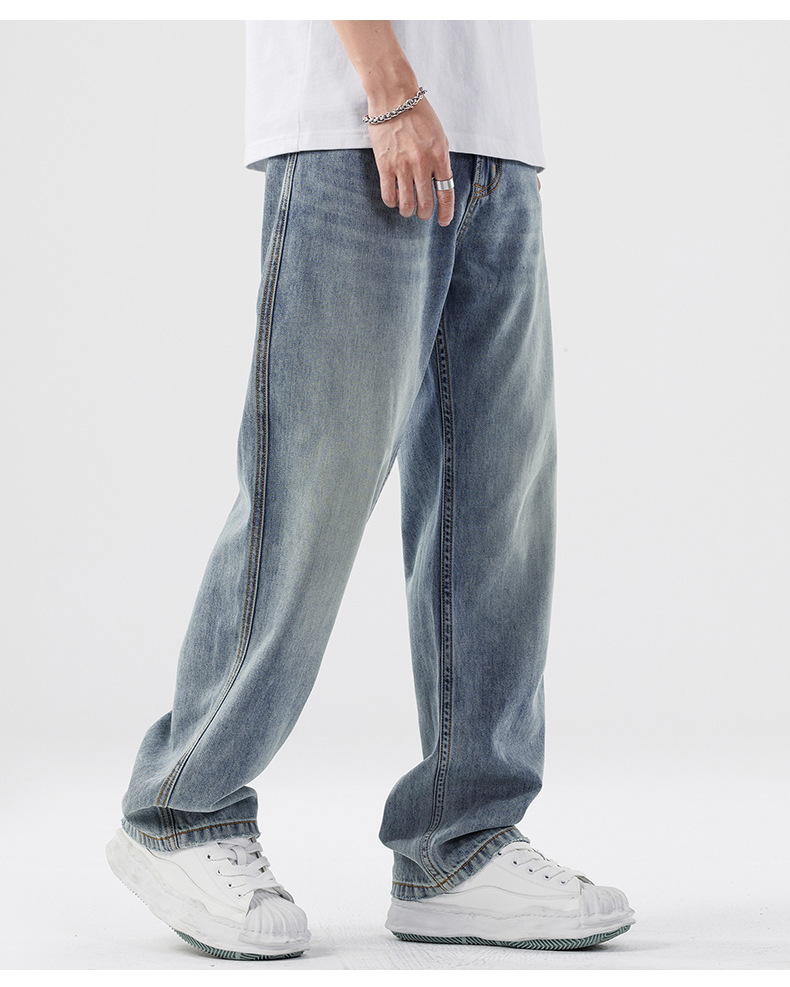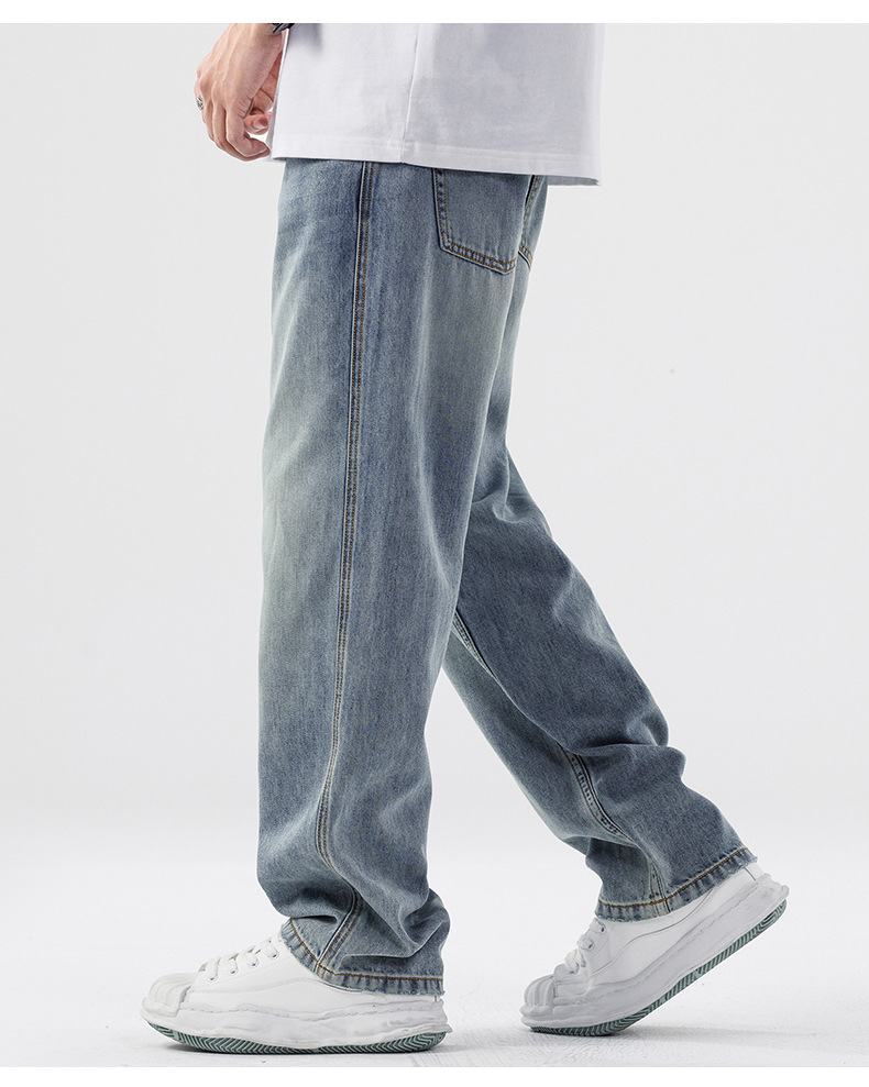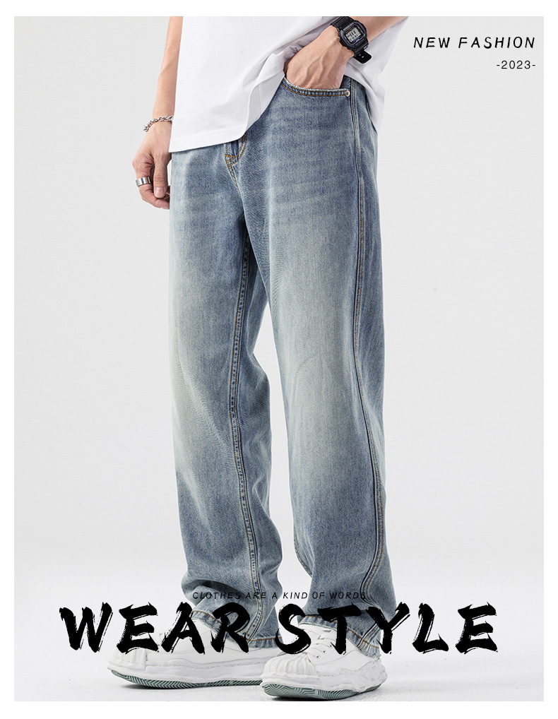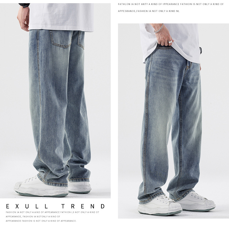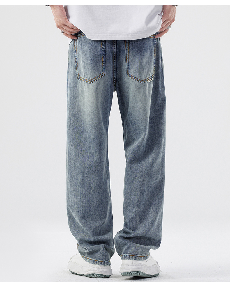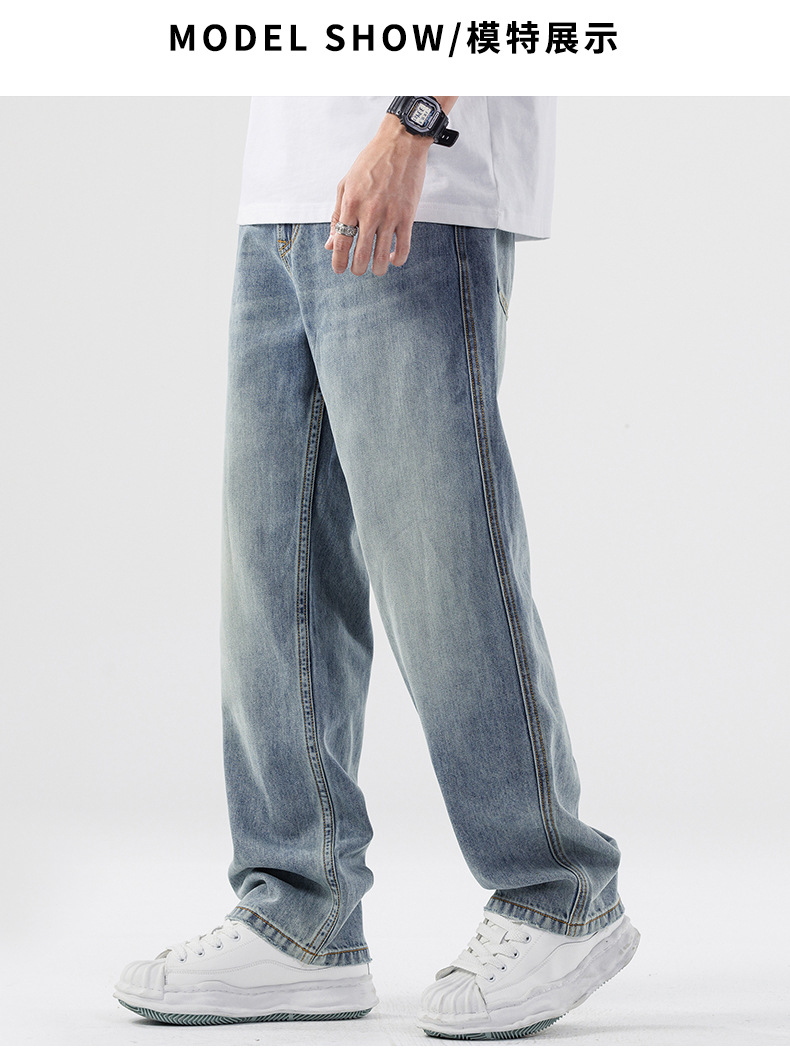 Lyocell Tencel 청바지 남성 봄과 여름 얇은 느슨한 스트레이트 대형 아이스 실크 투약 넓은 다리 긴 유행 바지스토어 가기