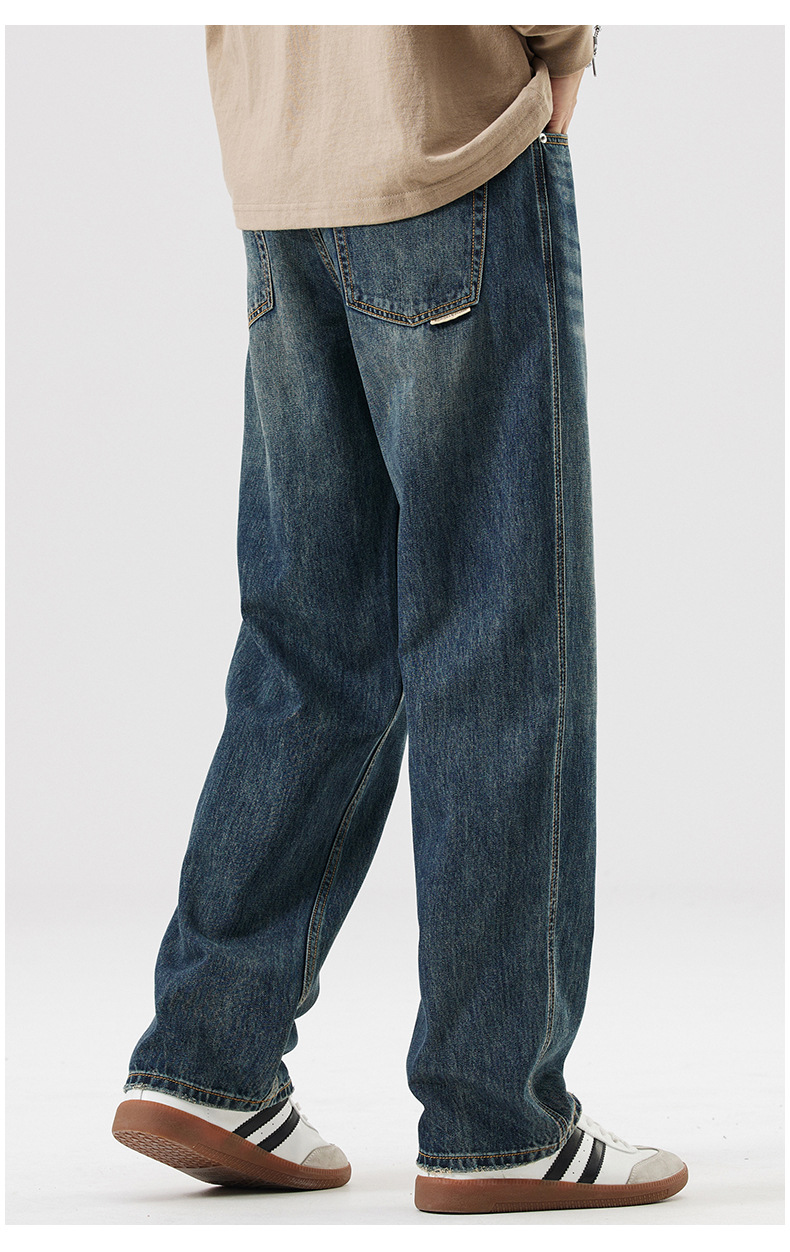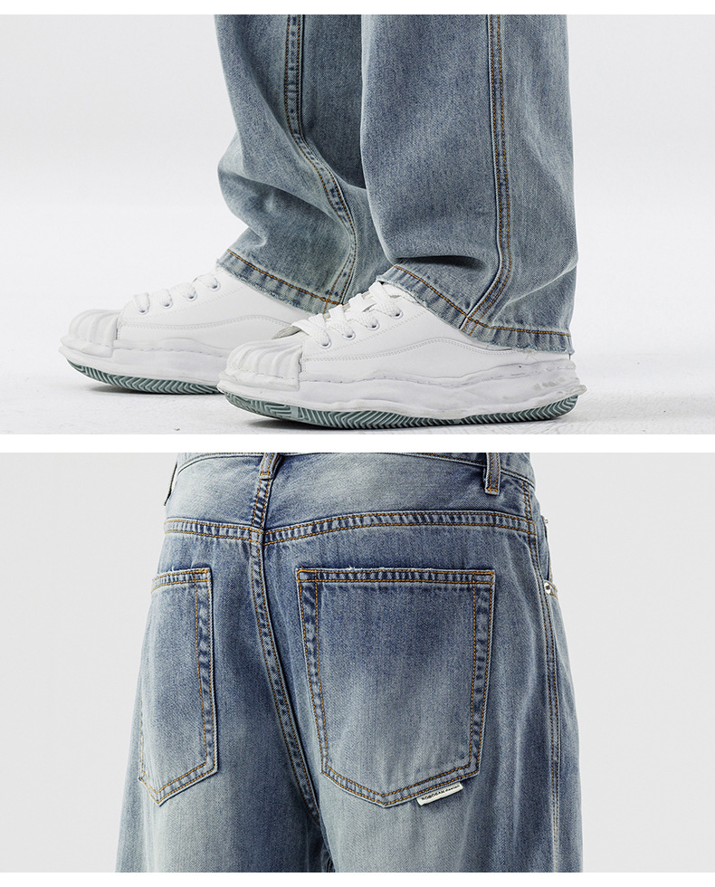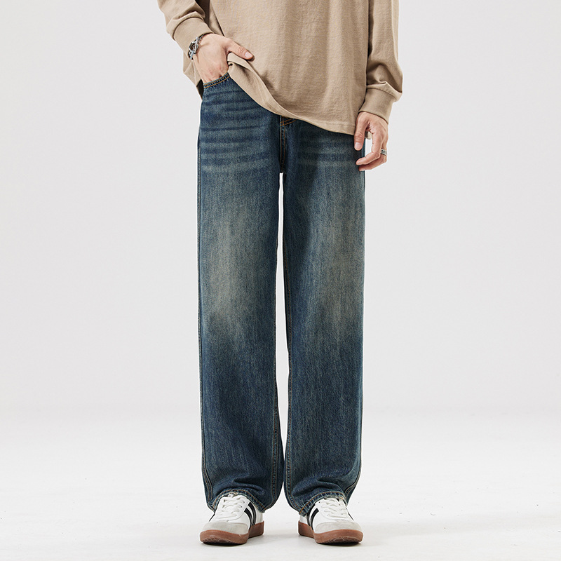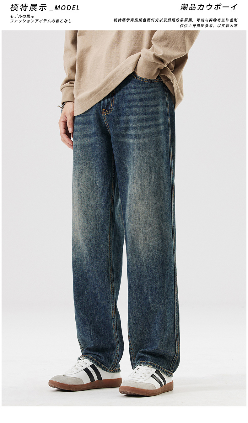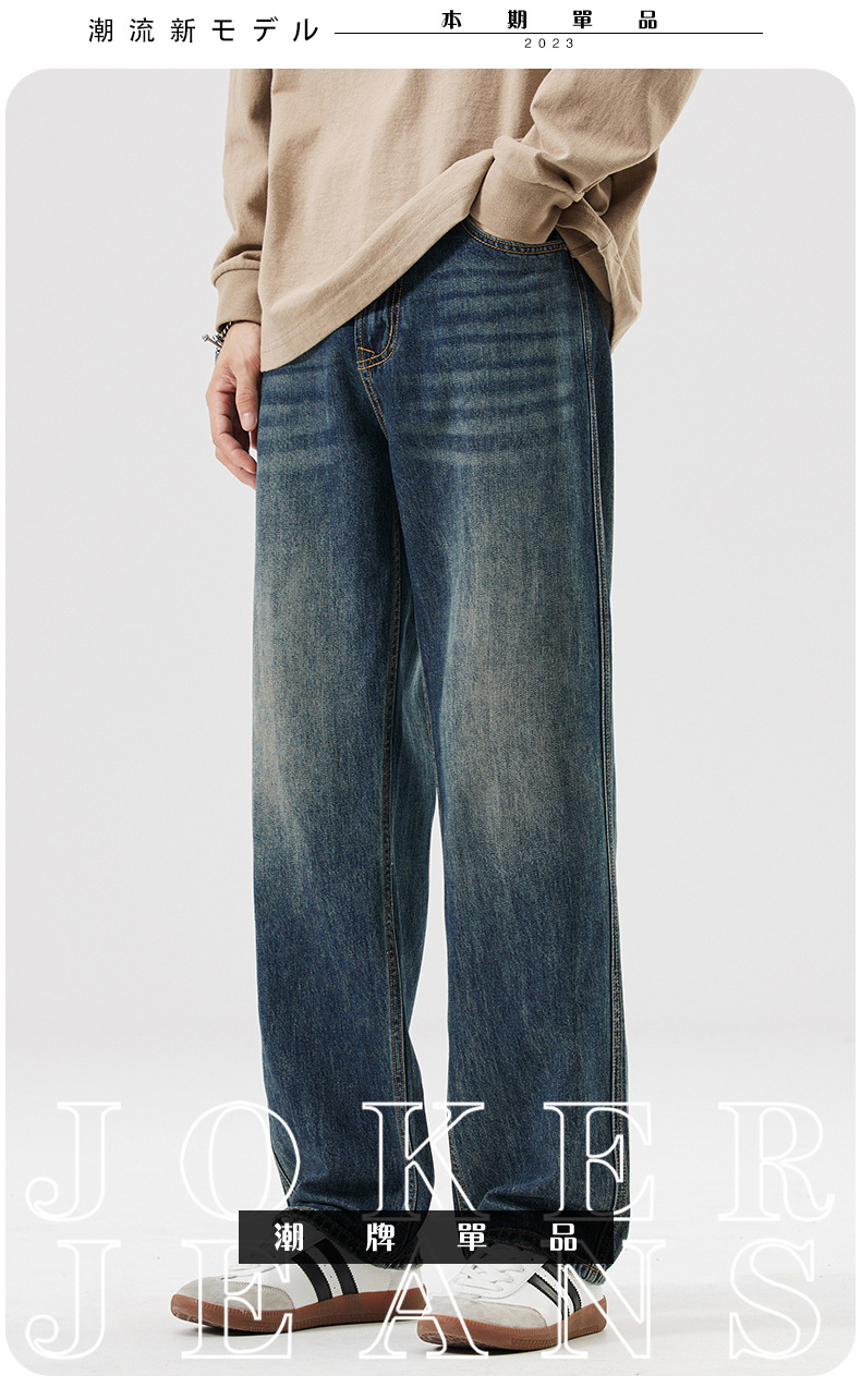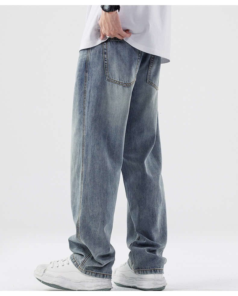 Lyocell Tencel 청바지 남성 봄과 여름 얇은 느슨한 스트레이트 대형 아이스 실크 투약 넓은 다리 긴 유행 바지스토어 가기