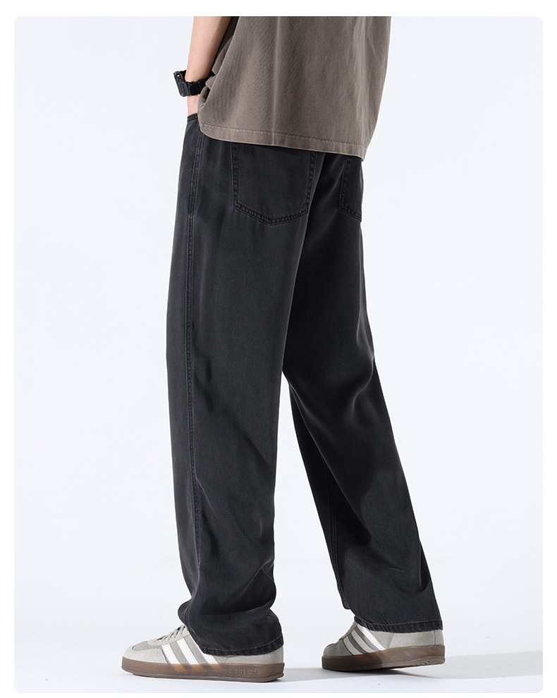 Lyocell Tencel 청바지 남성 봄과 여름 얇은 느슨한 스트레이트 대형 아이스 실크 투약 넓은 다리 긴 유행 바지