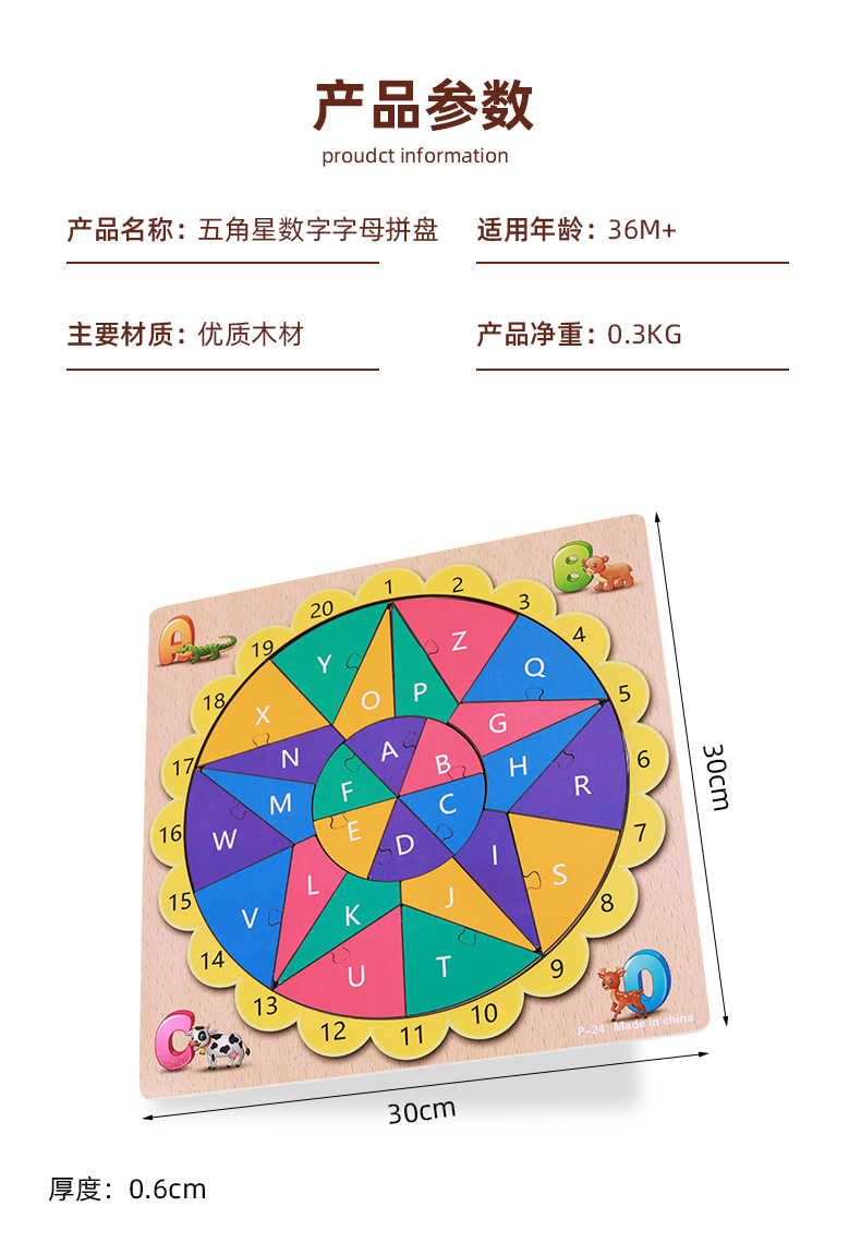 产品名称:字母数字五角星拼板
