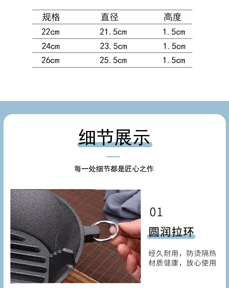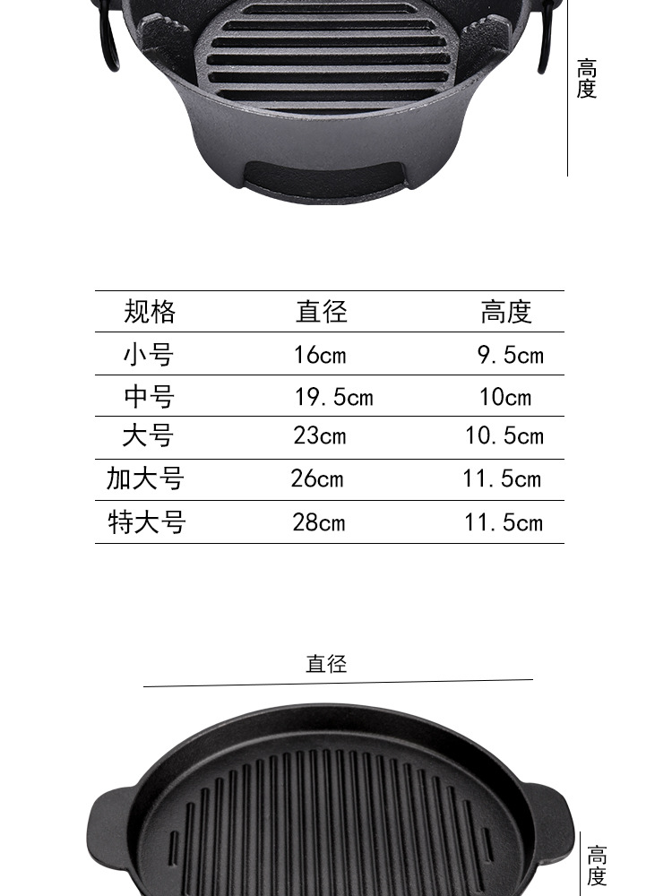 • 29cm 스테인레스 스틸 그릴 (23/26/28cm 탄소로에 적합)