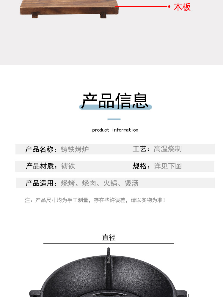 • 16cm 단일 용광로 + 나무 보드 + 베이킹 그물