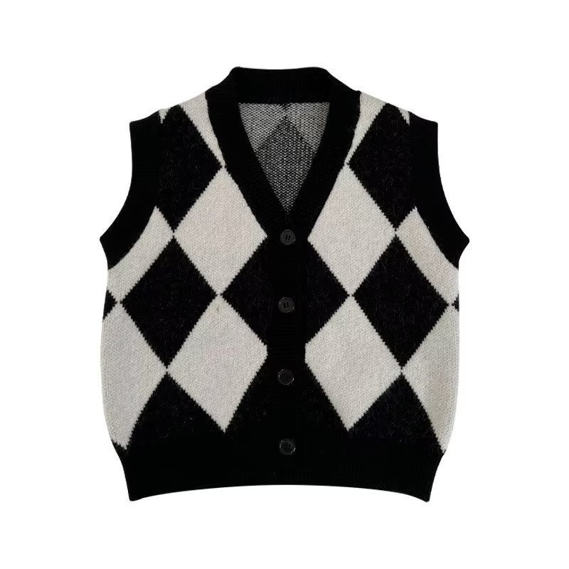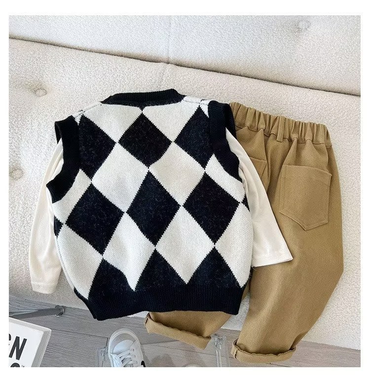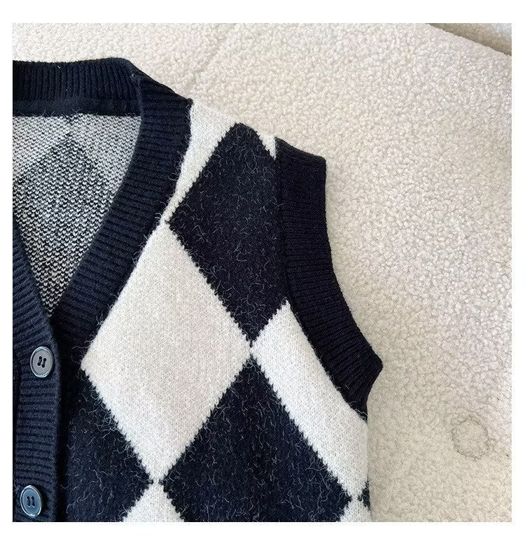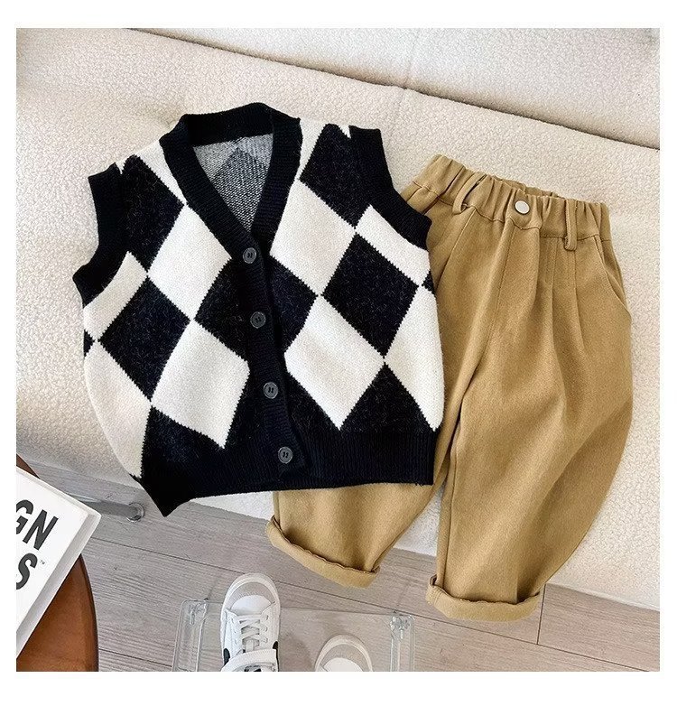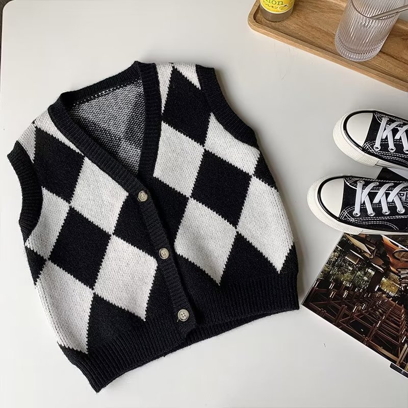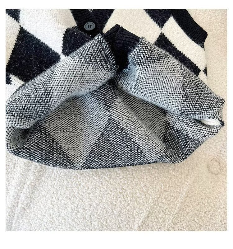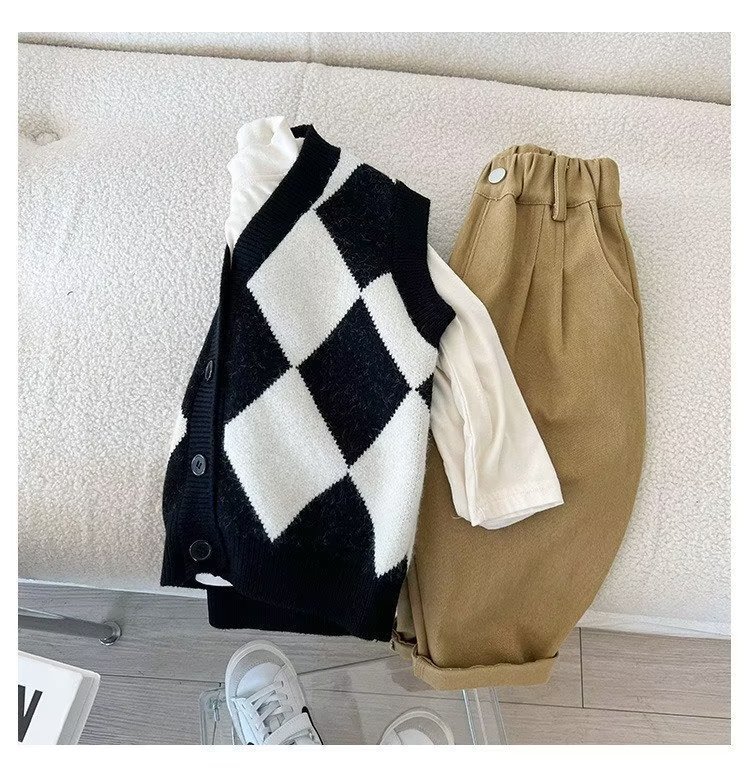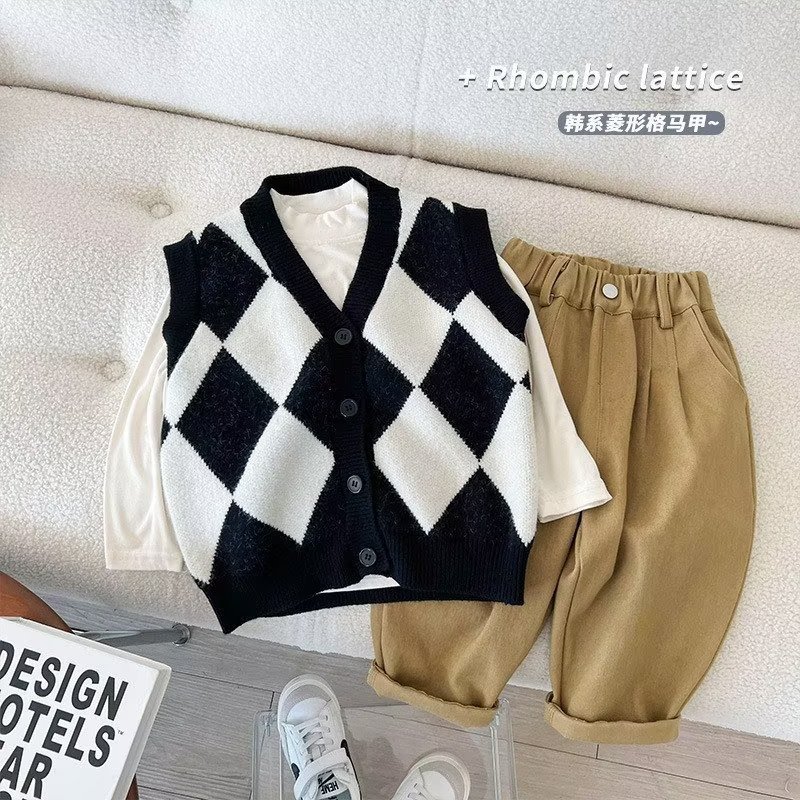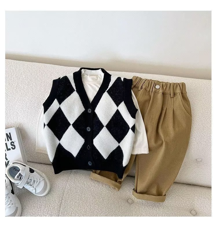 남학생을위한 마름모 스웨터 조끼 가을 및 겨울 V 넥 카디건 니트 조끼 아기 소녀 중소 어린이 양복 조끼