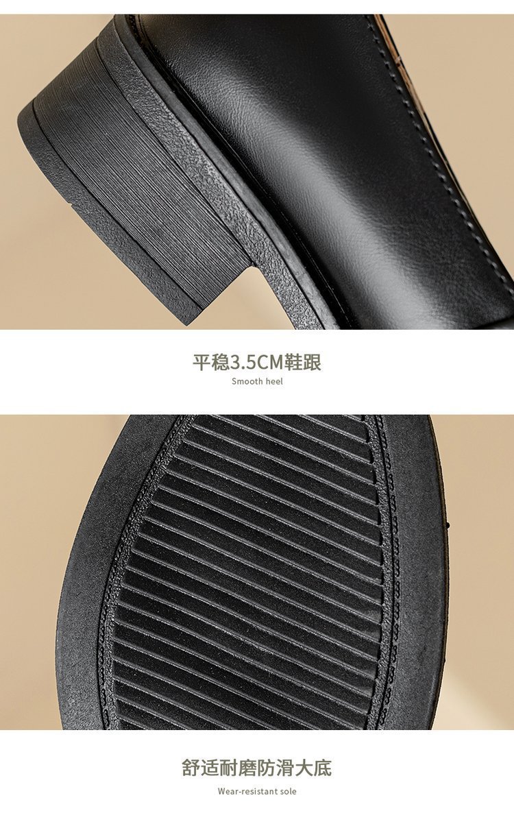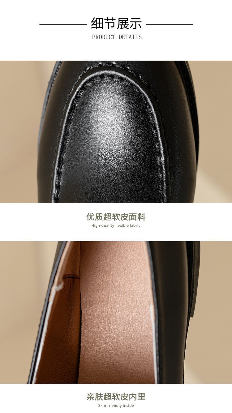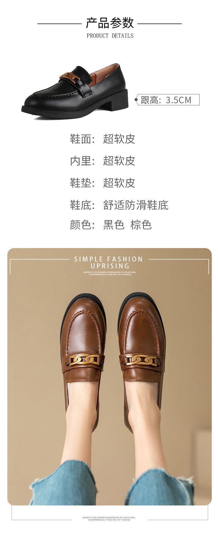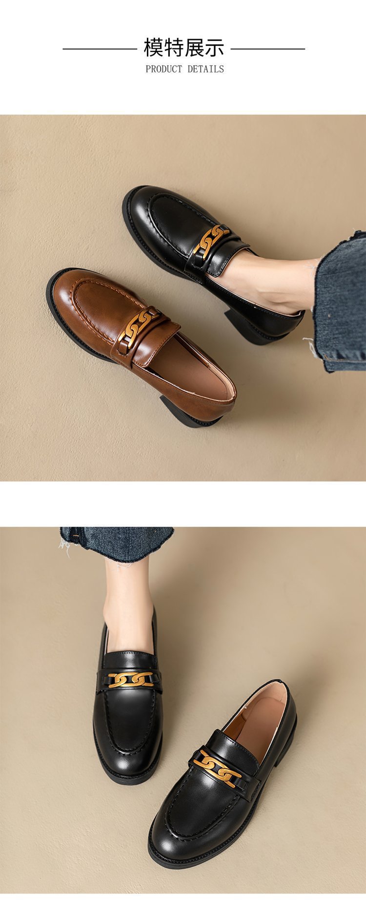 여성용 청키 힐 메탈 버클 로퍼 2024 봄 새로운 프랑스 레트로 다크 브라운 올 매치 싱글 라이닝 가죽 신발스토어 가기