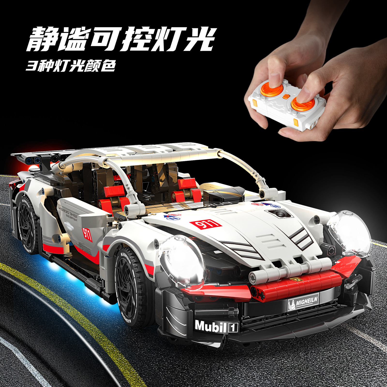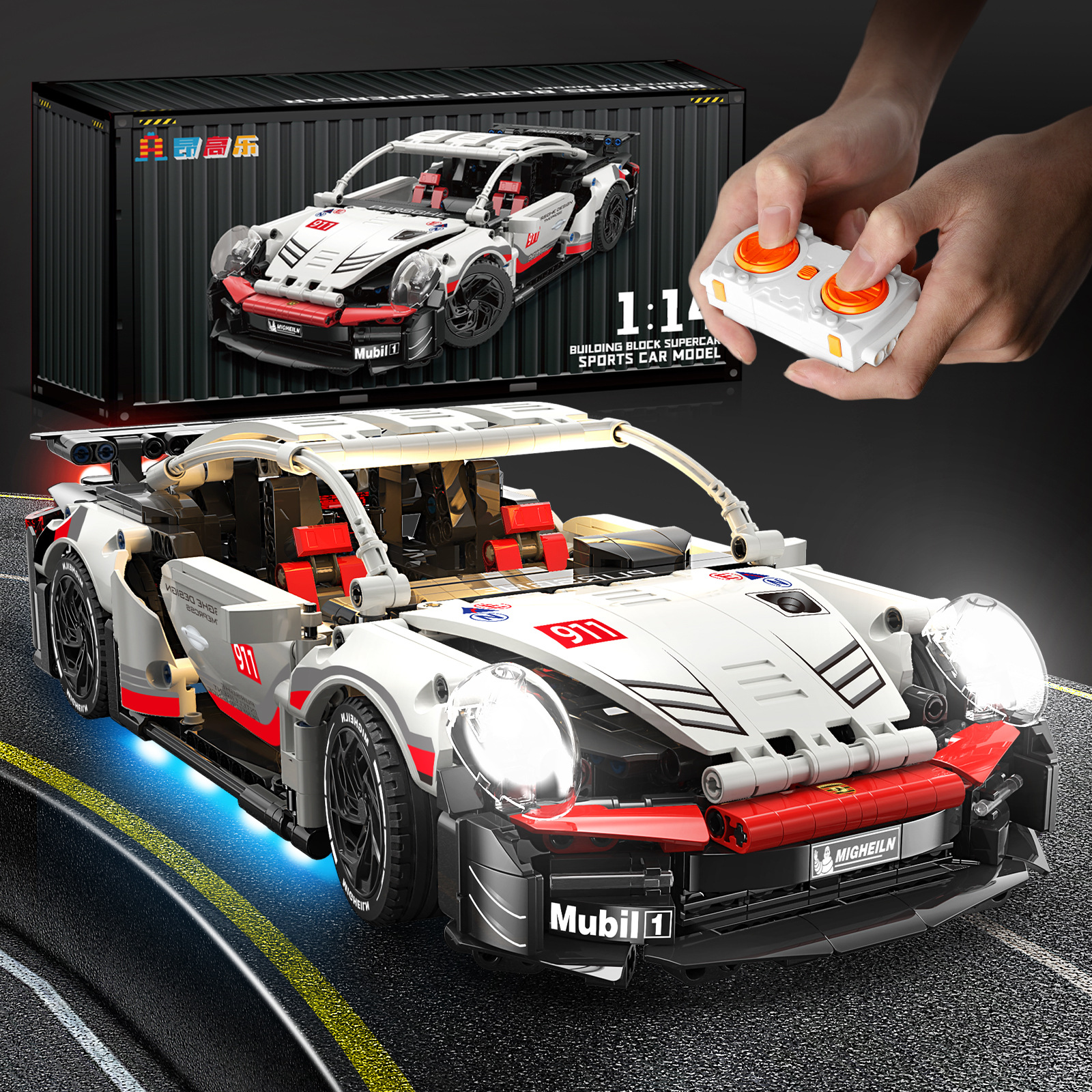 • 포르쉐 911 슈퍼카 - 정적 + 원격 제어 조명 [컨테이너 선물 상자]