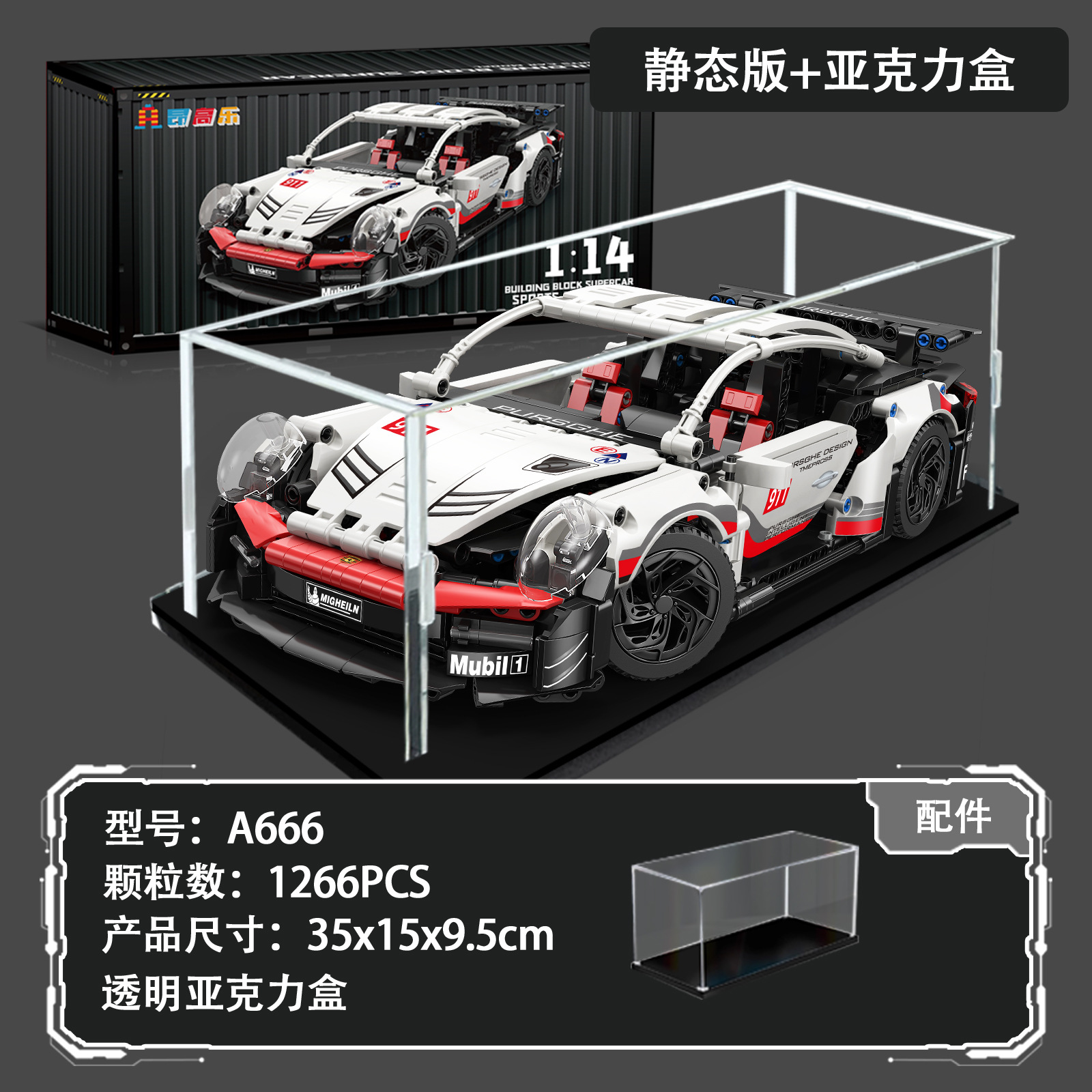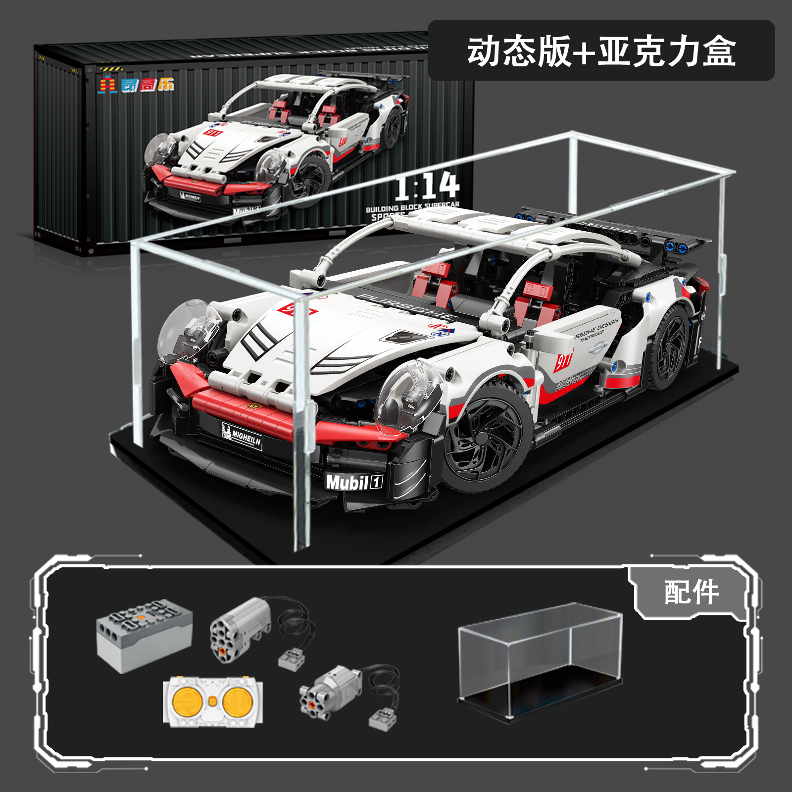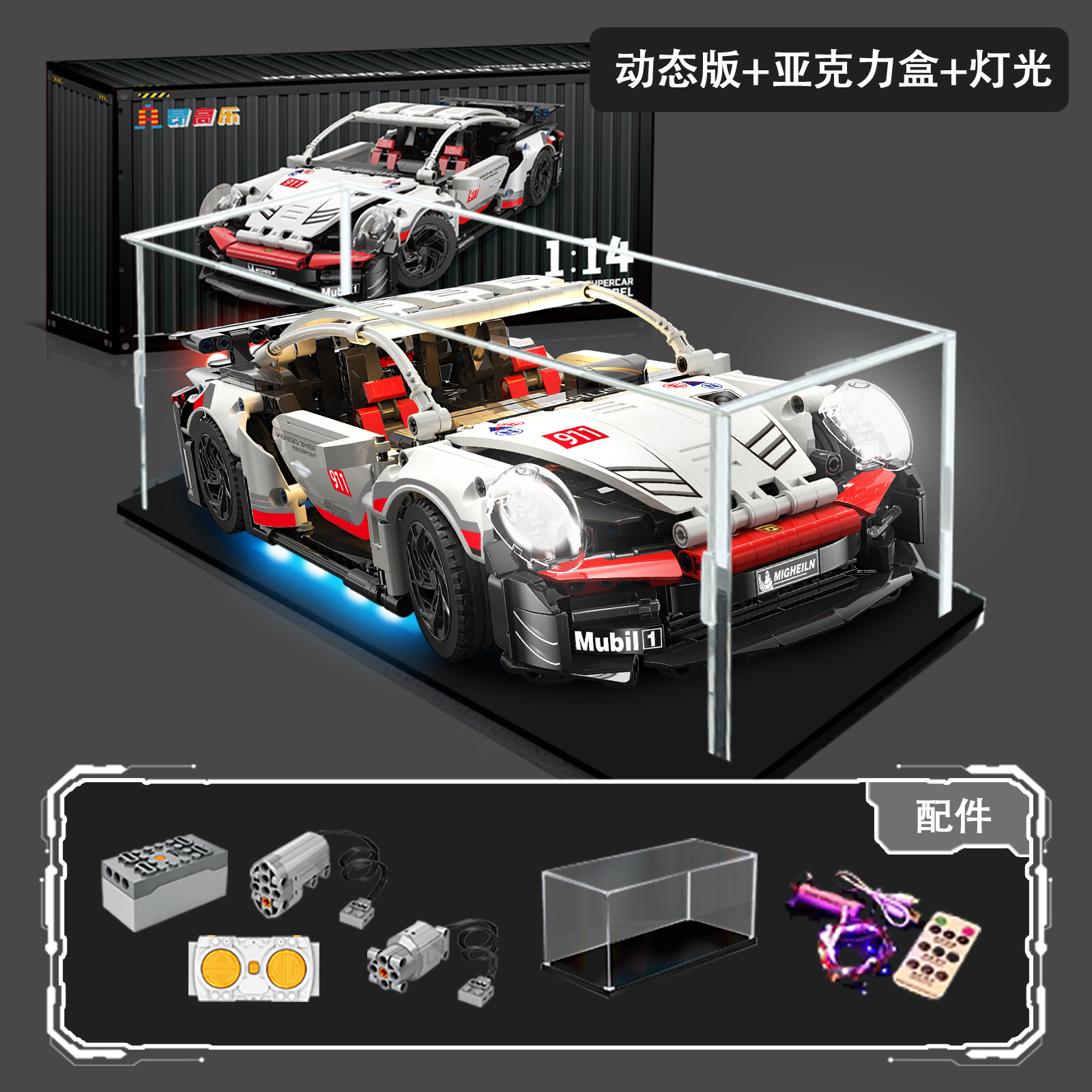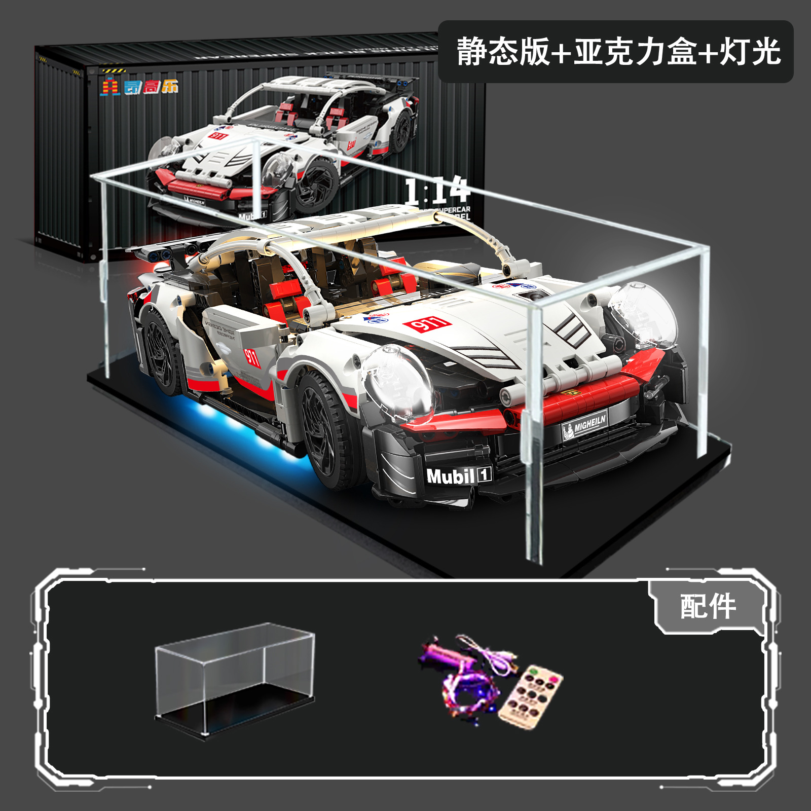• 포르쉐 911 슈퍼카 + 전원 + 조명 + 디스플레이 박스 [컨테이너 선물 상자]