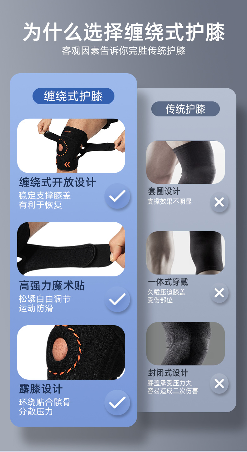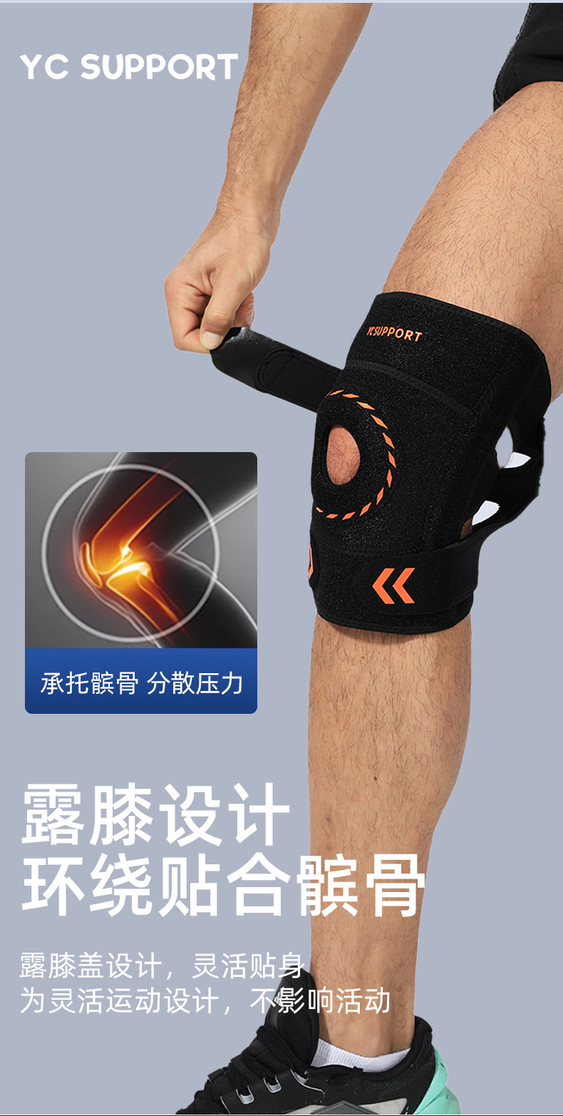 통기성 무릎 보호대, 조절 가능, 스포츠, 러닝, 사이클링, 등산용, 스프링 무릎관절 슬개골 벨트, 제조업체 도매, 충격 흡수, 미끄럼 방지스토어 가기