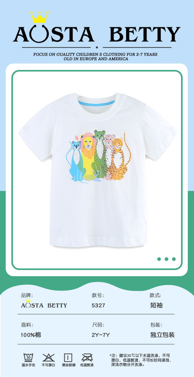 유럽풍 남아 반팔 티셔츠 26 아동 만화 동물 프린트 라운드넥 상의 유아 니트 면 스웨트셔츠스토어 가기