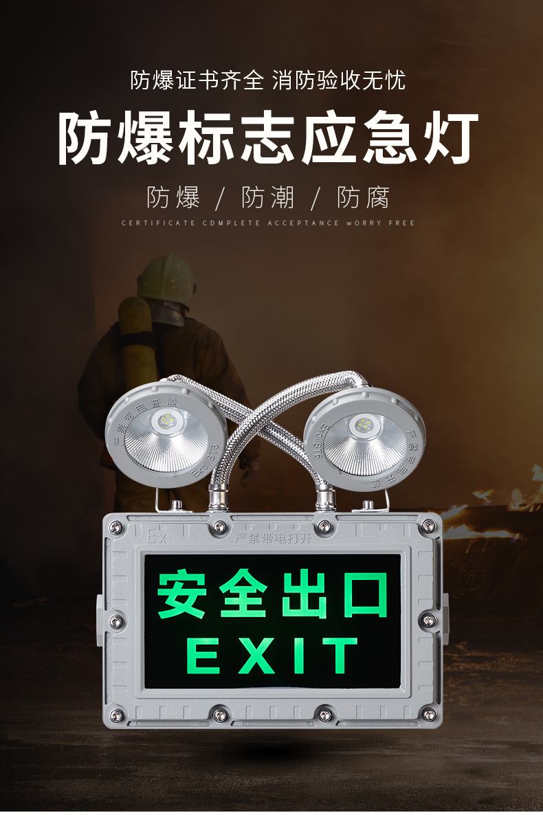 재고 폭발 방지 양두 비상등 2 대 1 출구 대피 표지판 표시기 화재 채널 LED 비상등스토어 가기