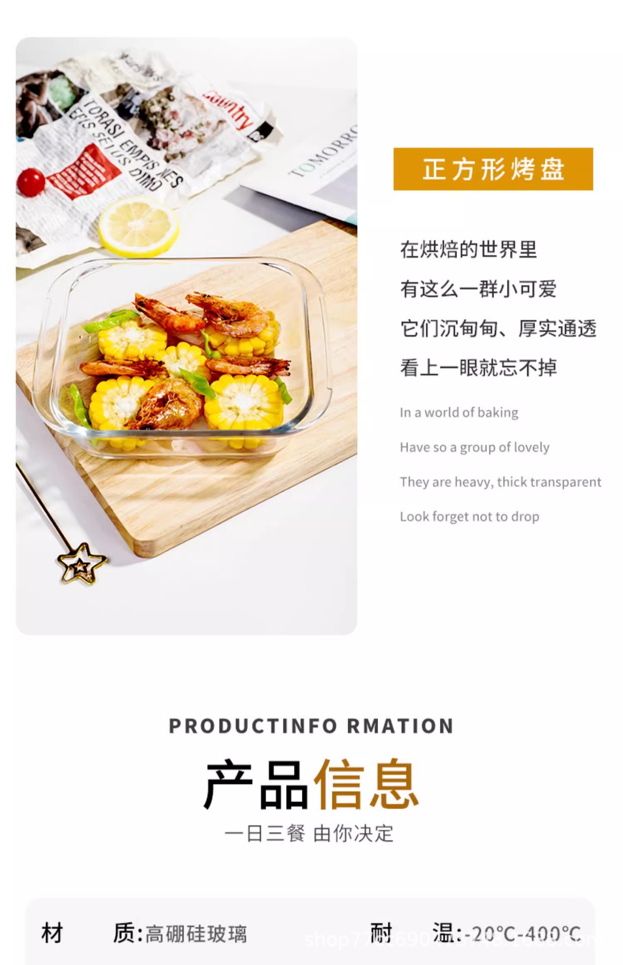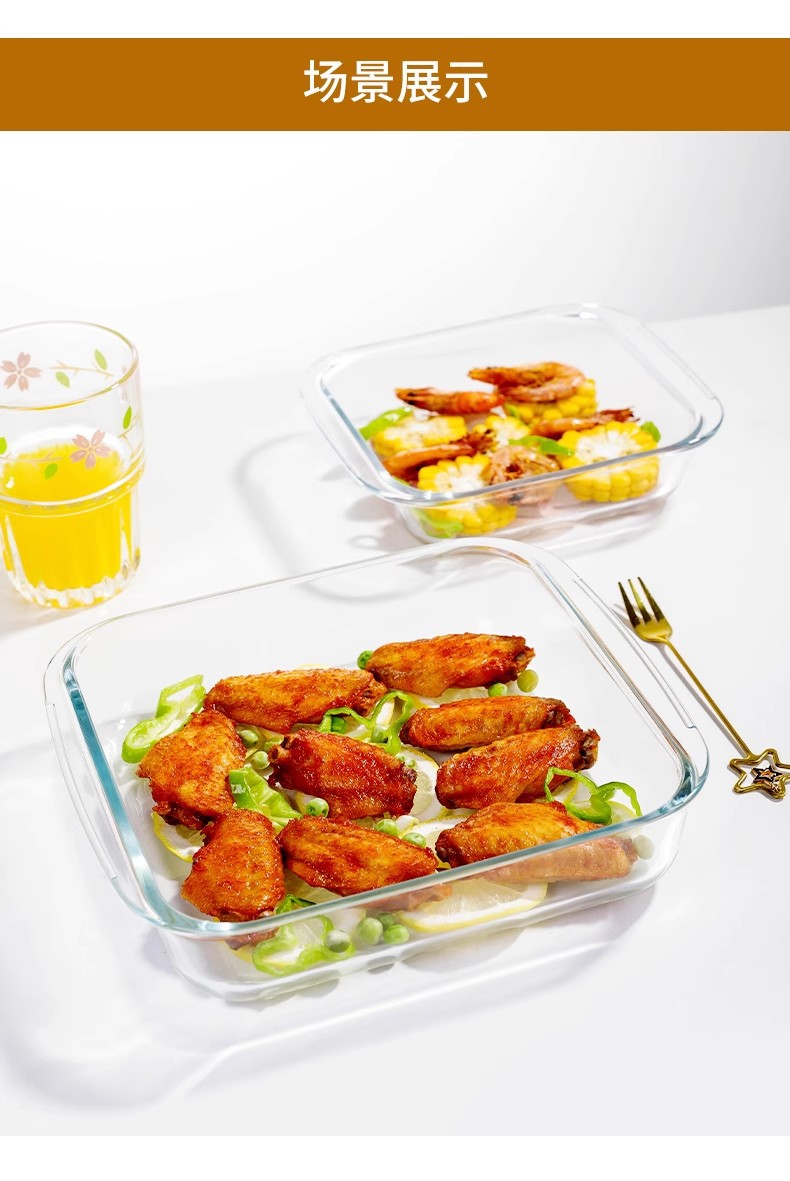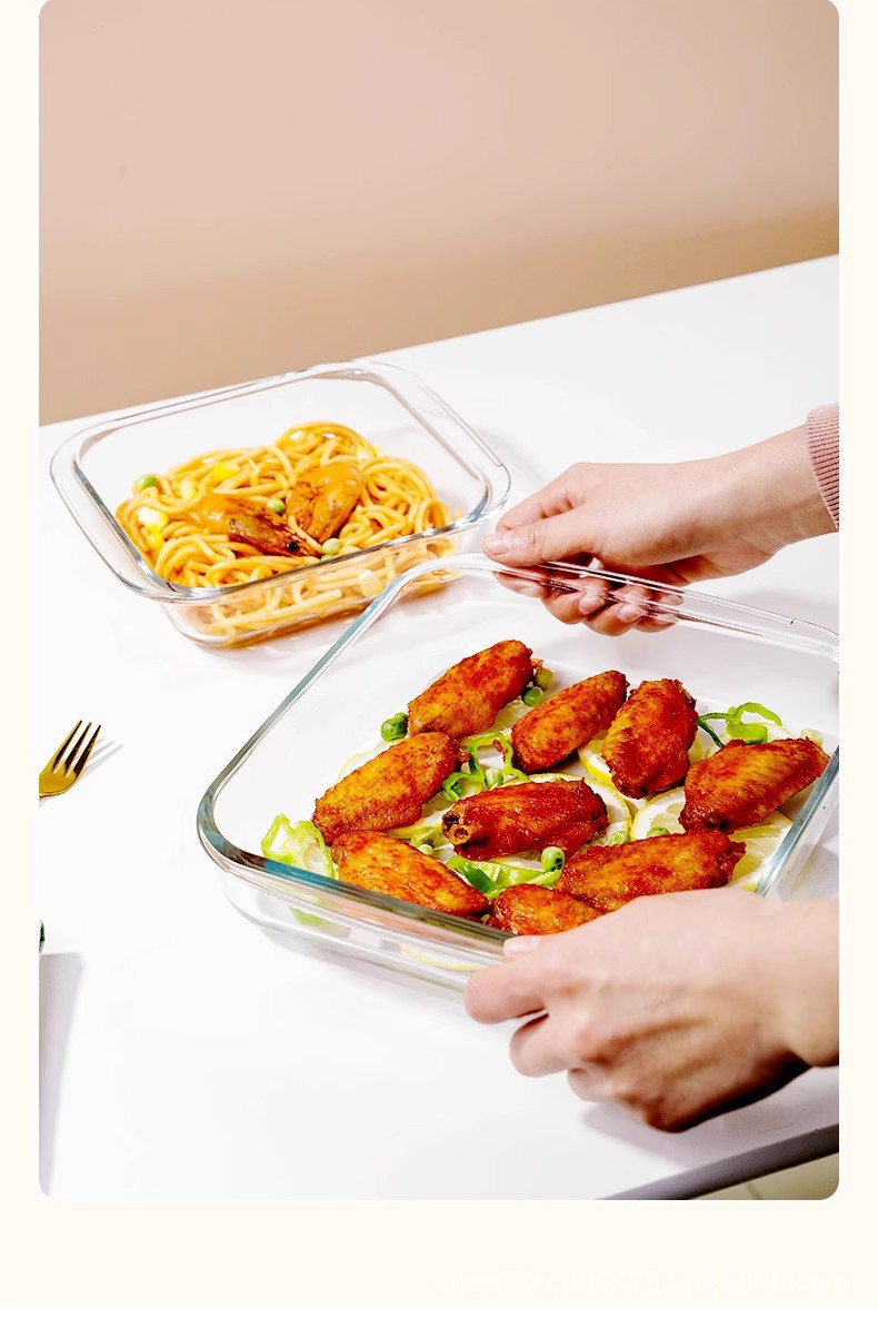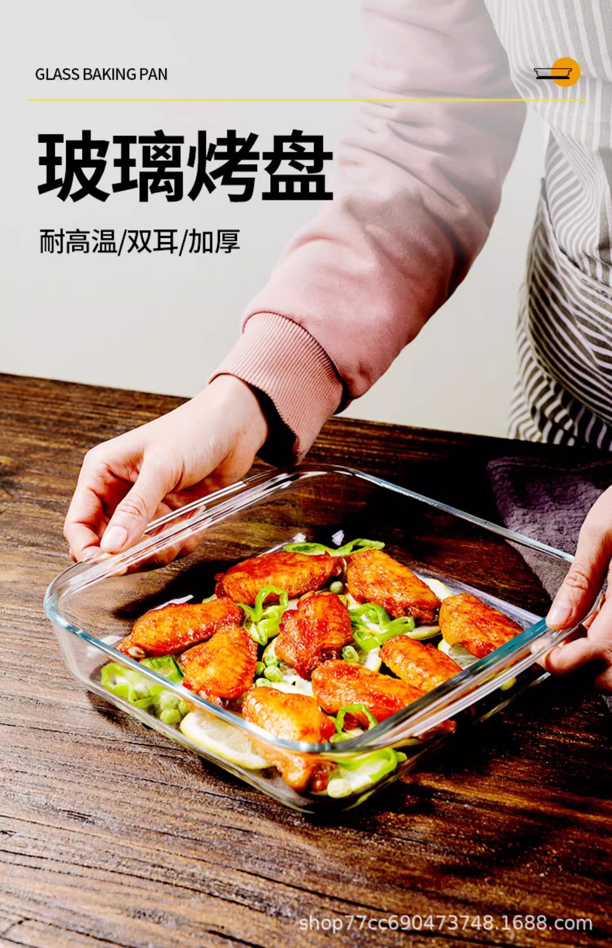 유리 베이킹 플레이트 가정용 고온 내성 접시 전자 레인지 특수 기구 사각 접시 찐 생선 구운 쌀 만두 판스토어 가기