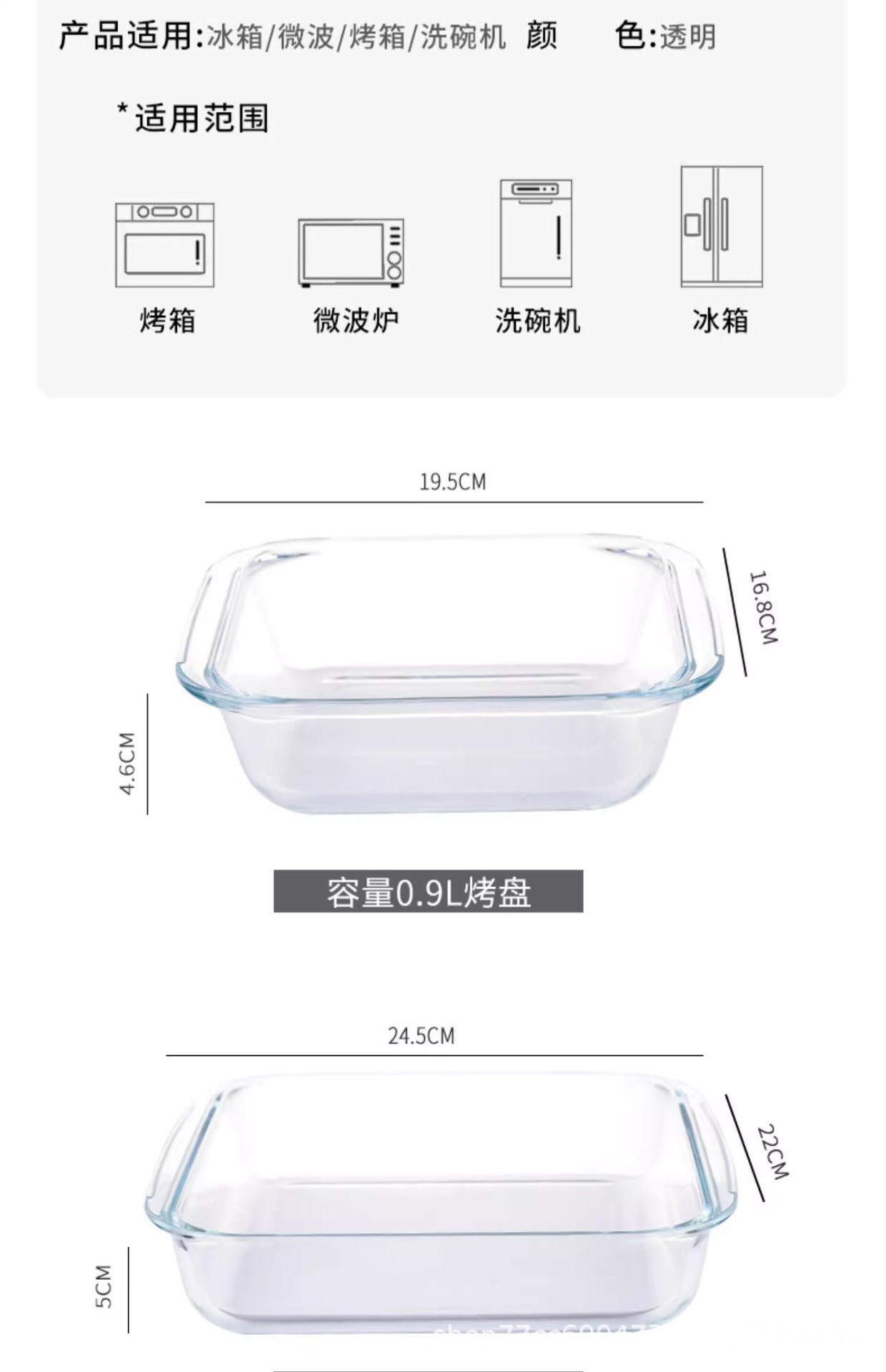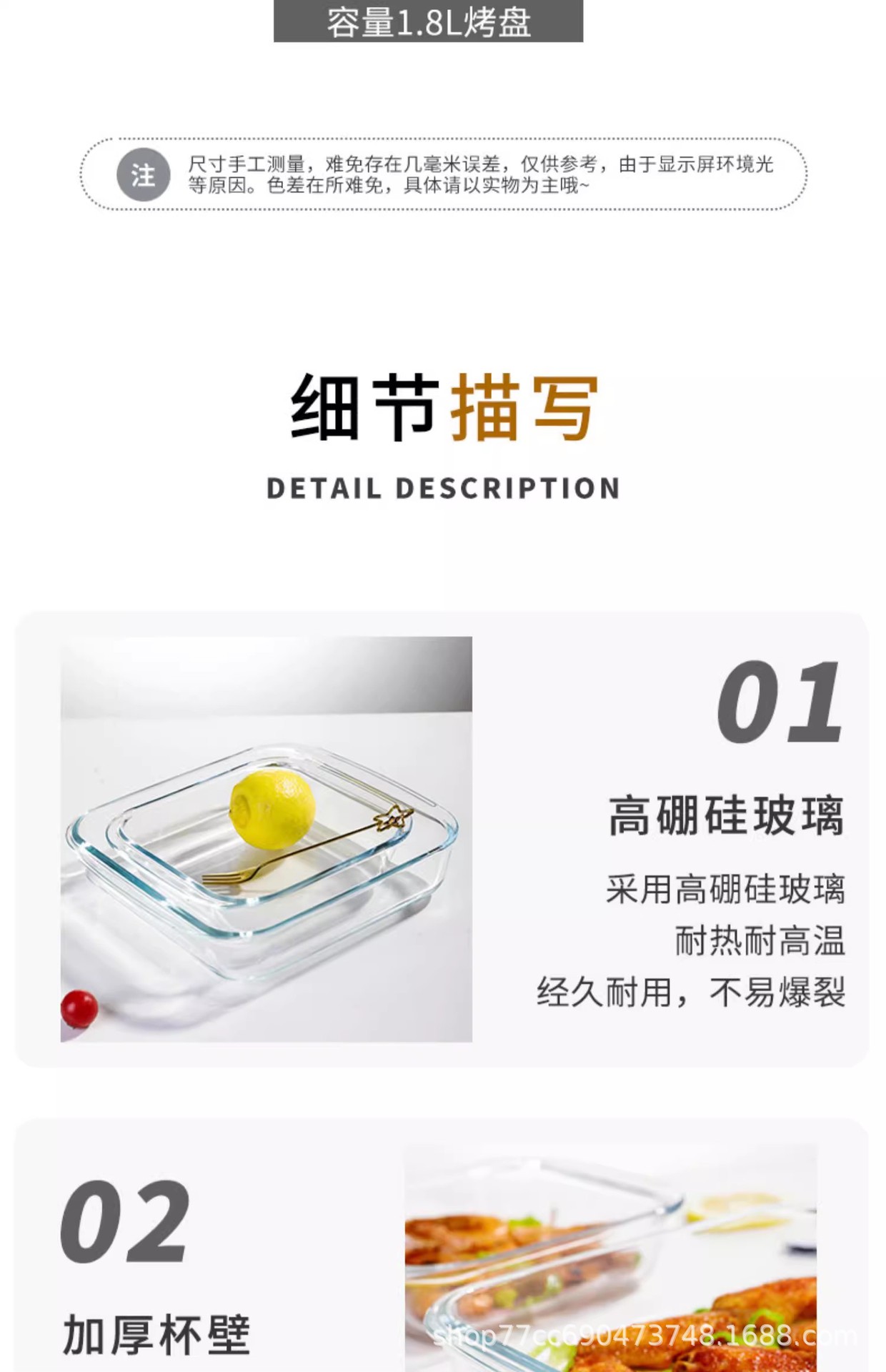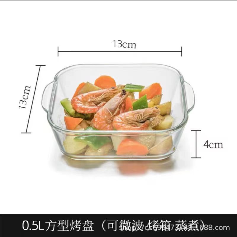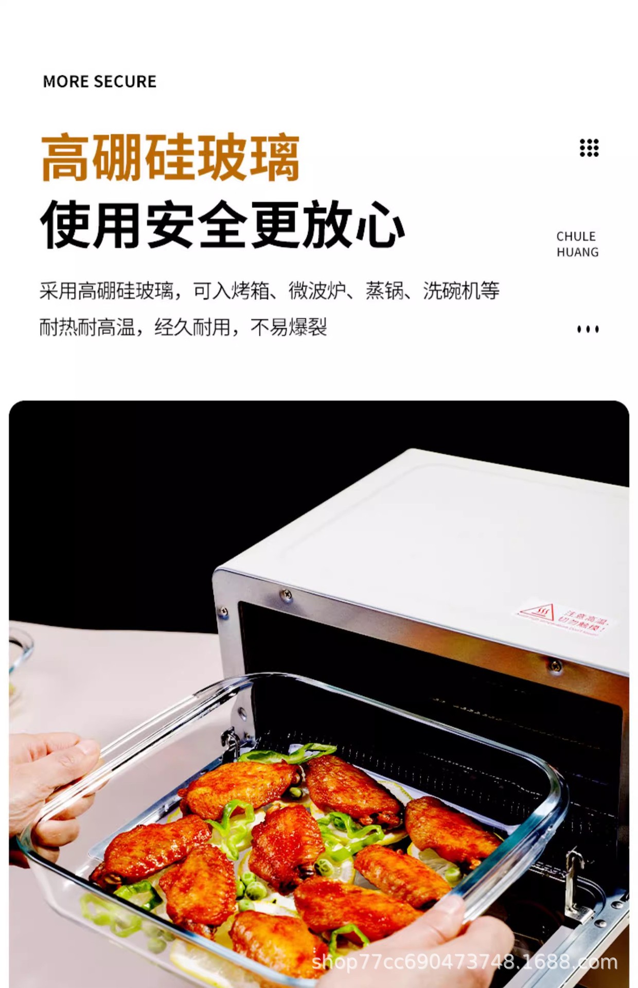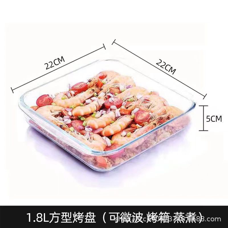 유리 베이킹 플레이트 가정용 고온 내성 접시 전자 레인지 특수 기구 사각 접시 찐 생선 구운 쌀 만두 판