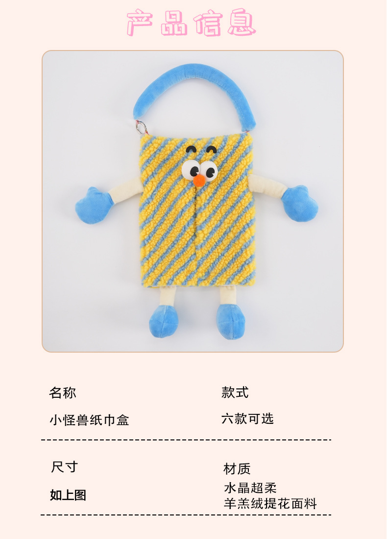 • 작은 괴물 매달려 티슈 상자-노란색 줄무늬